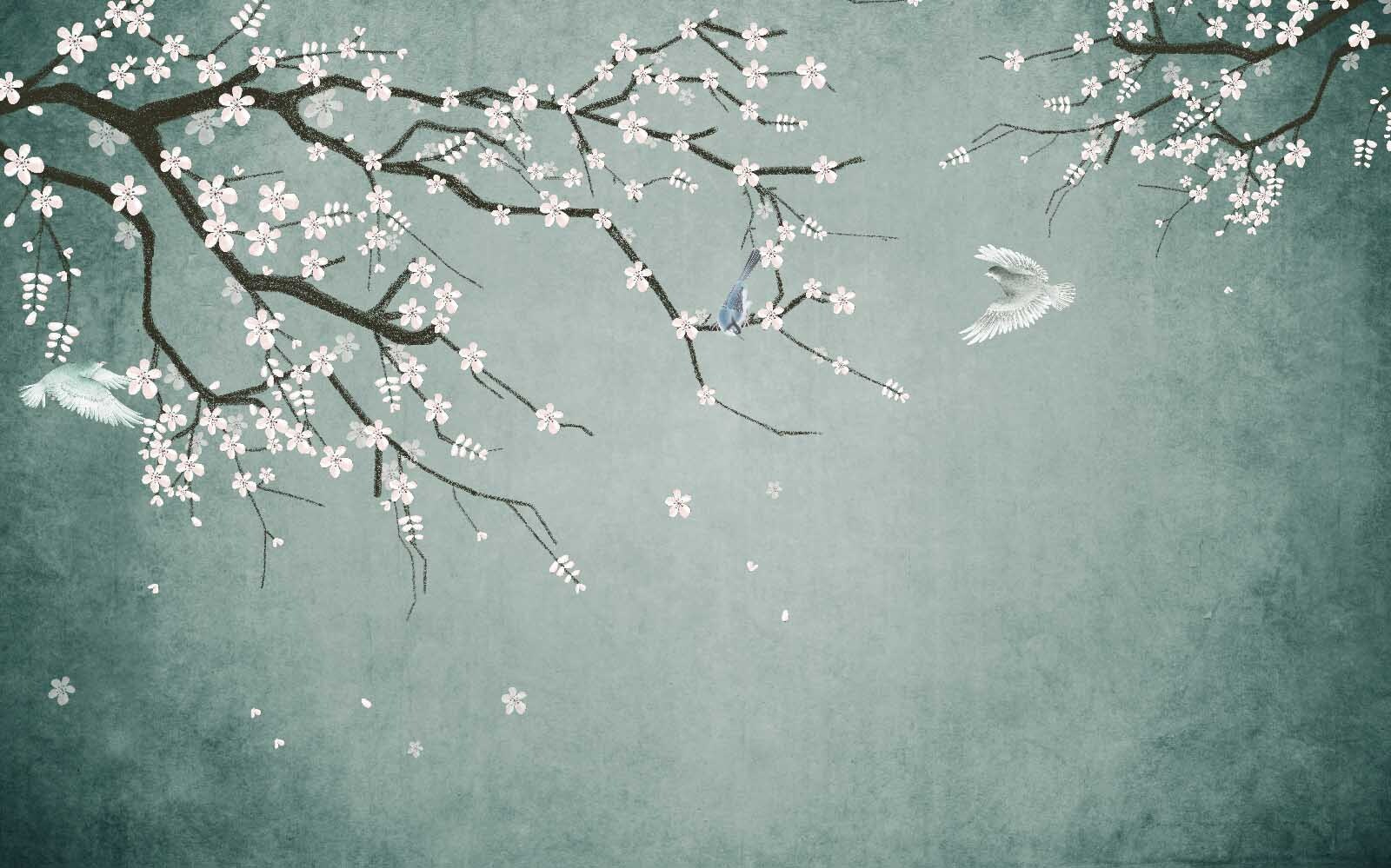 Ταπετσαρίες Πουλιά και άνθη σε γαλήνια αρμονία. (Κωδικός προϊόντος: u35808)