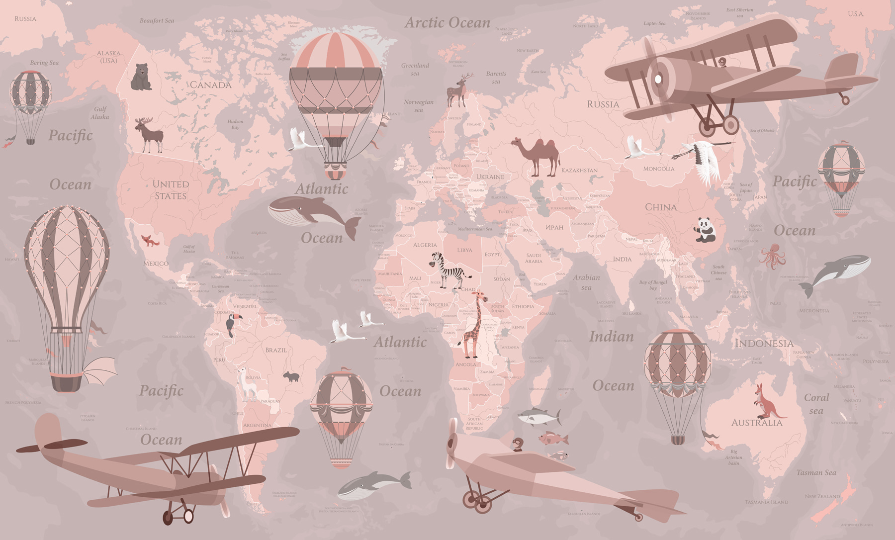 Γεια σας! Λοιπόν, φαντάσου αυτό: μια ονειρεμένη τοιχογραφία με παγκόσμιο χάρτη που είναι ιδανική για το δωμάτιο του μικρού εξερευνητή σου. Έχει vintage αεροπλάνα και παράξενα αερόστατα που αιωρούνται, δίνοντας στο όλο θέμα μια παιχνιδιάρικη, περιπετειώδη ατμόσφαιρα. Φανταστείτε το παιδί σας να δείχνει τα διάφορα ζώα που βρίσκονται διάσπαρτα στις ηπείρους, ονειρευόμενο μακρινά μέρη όπως η Αφρική με τις καμηλοπαρδάλεις της ή η Ασία με τα πάντα της. Δεν είναι απλώς ένας χάρτης, είναι ένας ολόκληρος κόσμος φαντασίας κολλημένος στον τοίχο, μετατρέποντας κάθε βαρετό χώρο σε ένα ζωντανό κέντρο περιπέτειας. Ιδανικός για ονειροπολήσεις, παραμύθια και σχεδιασμό αυτών των επικών φανταστικών ταξιδιών. Επιπλέον, είναι ένας καταπληκτικός τρόπος για να βάλεις λίγη μάθηση στην ημέρα τους χωρίς να νιώθουν, ξέρεις, σαν σχολείο. Εξαιρετικό για να κεντρίσετε την περιέργεια – και ποιος ξέρει, ίσως να εμπνεύσετε τον επόμενο μεγάλο εξερευνητή!