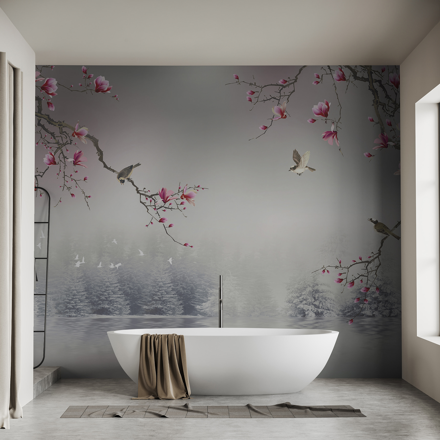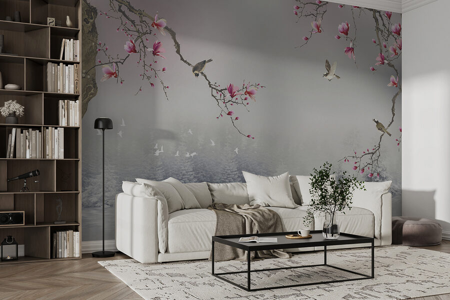 Φανταστείτε να αράζετε με ένα φλιτζάνι τσάι, ατενίζοντας τις “τοιχογραφίες πουλιών και λουλουδιών πάνω από το γαλήνιο νερό”. Αυτή η τοιχογραφία δεν είναι απλώς ένα έργο τέχνης – είναι μια εμπειρία. Με πουλιά που πετούν και άνθη σε πλήρη άνθιση πάνω από γαλήνιο νερό, είναι σαν να έχετε έναν ονειρεμένο ιαπωνικό κήπο στο σαλόνι σας. Μπορείτε σχεδόν να ακούσετε το κελάηδισμα και να νιώσετε την ηρεμία. Από τα ζωηρά λουλούδια μέχρι το ομιχλώδες σκηνικό, πρόκειται για οπτικές διακοπές. Ιδανικό για να προκαλέσει χαρά και ηρεμία, είναι έναυσμα για συζήτηση – φανταστείτε τις ιστορίες που θα μπορούσε να διηγηθεί ο τοίχος σας! Ένας εύκολος τρόπος για να μετατρέψετε οποιονδήποτε χώρο σε ένα καταφύγιο ζεν. 🌸🕊️
