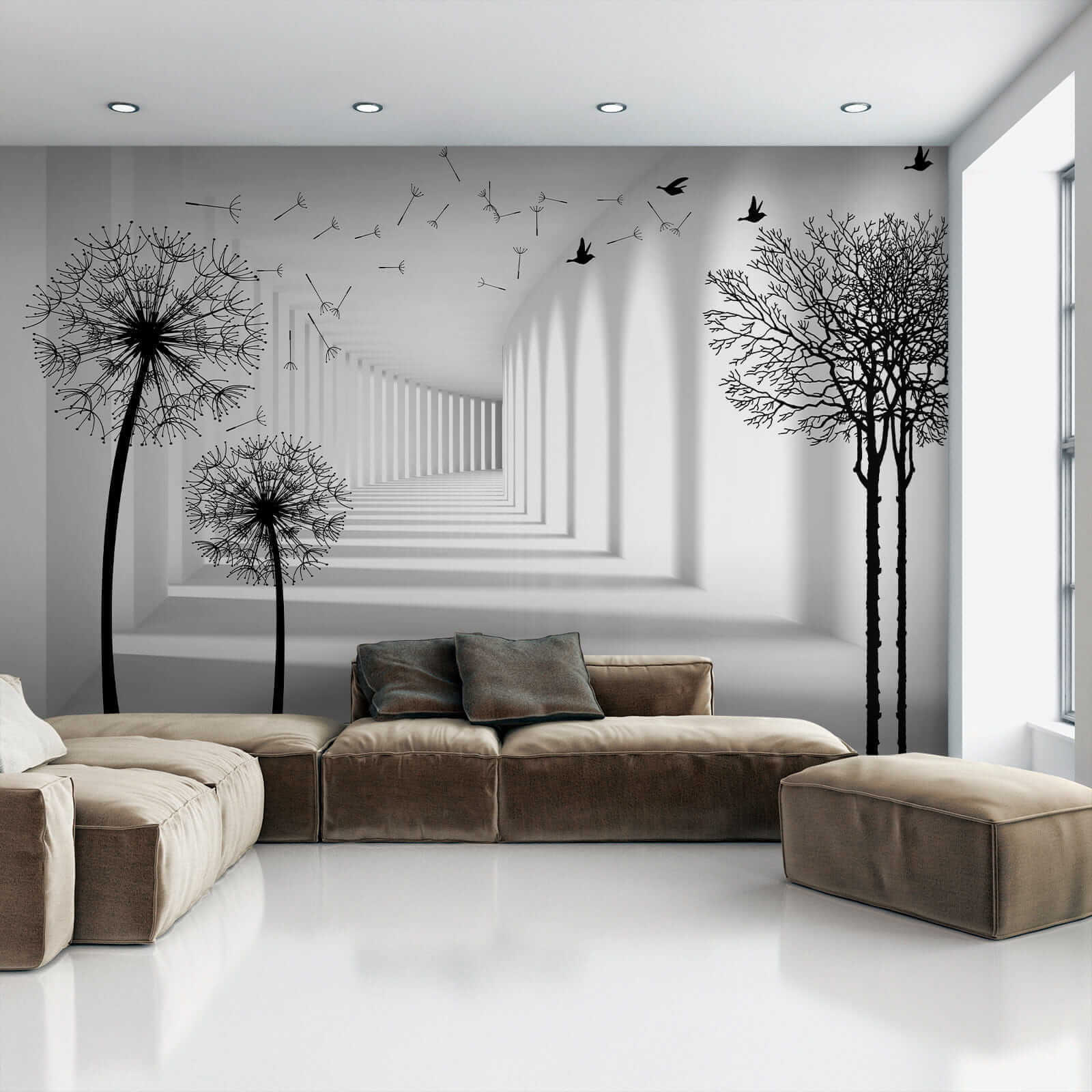 Ταπετσαρίες Ταπετσαρίες Μαύρη σιλουέτα μιας πικραλίδας (Κωδικός προϊόντος: u37803)