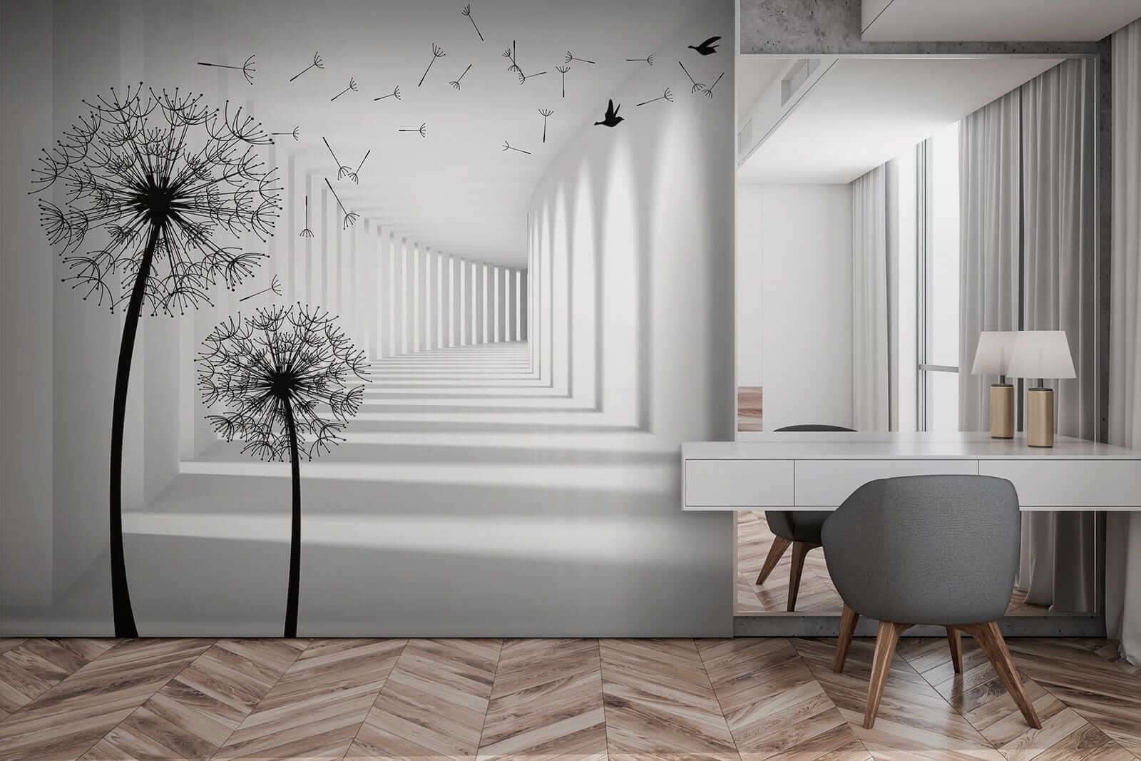 Φανταστείτε να μπαίνετε σε ένα δωμάτιο και να σας υποδέχεται ο ιδιόρρυθμος χορός των πικραλίδων! Αυτή η τοιχογραφία τοίχου, με τίτλο “Μαύρη σιλουέτα μιας πικραλίδας”, κάνει ακριβώς αυτό – είναι σαν να αποτυπώνει μια απαλή, αεράτη μέρα σε εσωτερικό χώρο. Οι εντυπωσιακές μαύρες σιλουέτες σε ένα φωτεινό φόντο δημιουργούν μια εκπληκτική αντίθεση. Το πιο ωραίο είναι το πώς φαίνεται να απλώνεται ο χώρος, κάνοντας κάθε δωμάτιο να μοιάζει μεγαλύτερο… και πιο ανοιχτό. Επιπλέον, υπάρχει κάτι τόσο ηρεμιστικό σε αυτούς τους αιωρούμενους σπόρους, σωστά; Είναι σχεδόν σαν να νιώθεις ένα απαλό αεράκι να φυσάει μέσα σου.