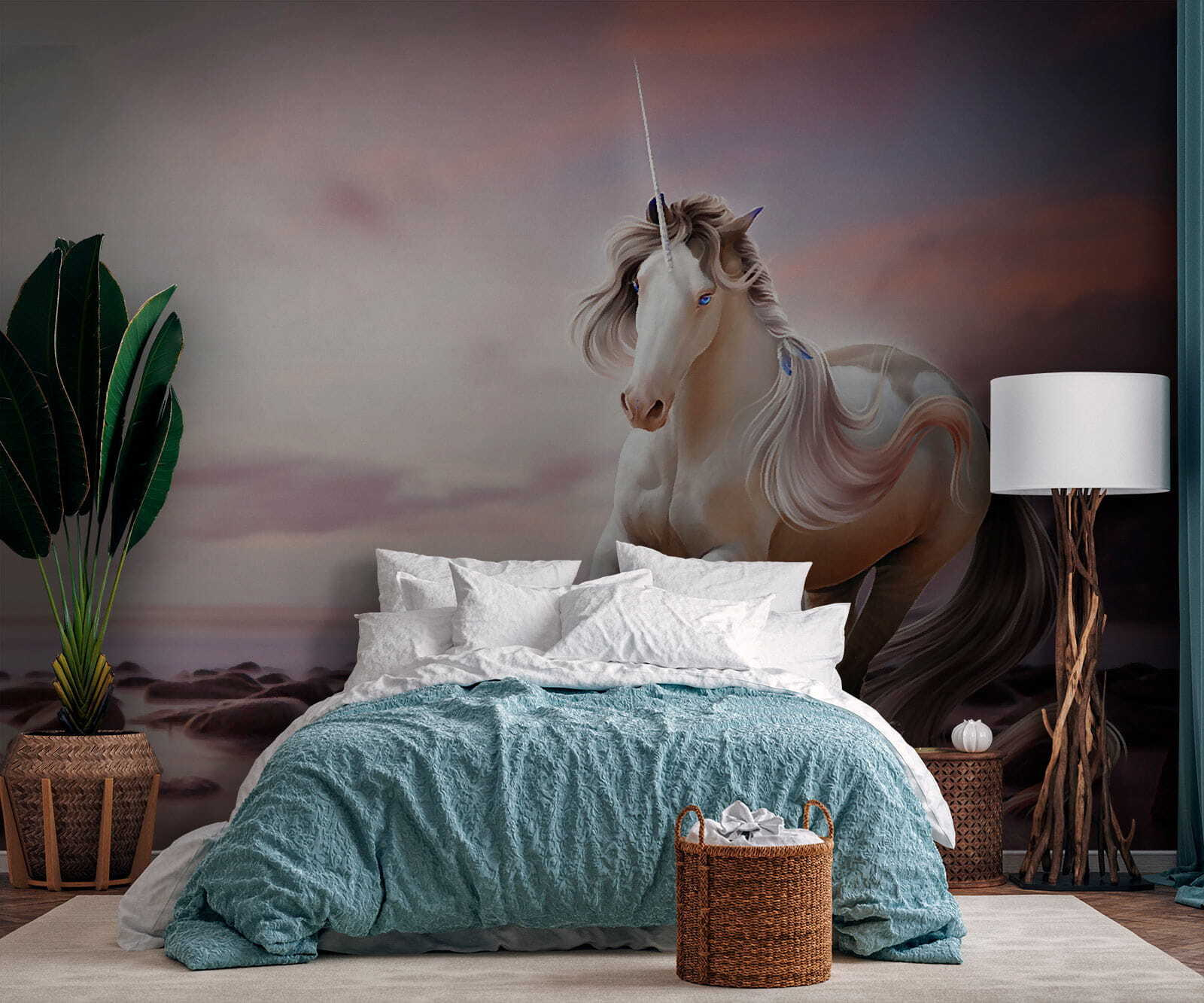 Φανταστείτε να μπαίνετε σε έναν μαγικό κόσμο κάθε φορά που μπαίνετε στο δωμάτιό σας. Αυτή η τοιχογραφία τοίχου “Mystical Unicorn in Serene Sunset” κάνει ακριβώς αυτό. Ιδανική για όποιον έχει ονειρευτεί ποτέ να έχει έναν μονόκερο για καλύτερο φίλο, είναι σαν να έχετε ένα κομμάτι από τη χώρα της φαντασίας ακριβώς στο σπίτι σας. Οι απαλές αποχρώσεις του λυκόφωτος και η γαλήνια παραλία αποτυπώνουν την ηρεμία ενός απογεύματος στην ακτή, αλλά με μια δόση μαγείας – γιατί ποιος δεν χρειάζεται λίγη μαγεία στη ζωή του; Είναι ιδιαίτερα ιδανικό για παιδικούς χώρους ή ως μια ιδιόρρυθμη πινελιά σε μια γωνιά ανάγνωσης. Φανταστείτε το: ξαπλωμένοι στο κρεβάτι σας, ατενίζοντας αυτόν τον ονειρικό μονόκερο, νιώθοντας ότι μεταφέρεστε σε ένα μέρος όπου όλα είναι δυνατά – αυτό κάνει αυτή η τοιχογραφία. Γιατί, λοιπόν, να μην προσθέσετε λίγη νεραϊδόσκονη στη διακόσμησή σας και να κάνετε την κάθε μέρα να μοιάζει λίγο πιο μαγική;