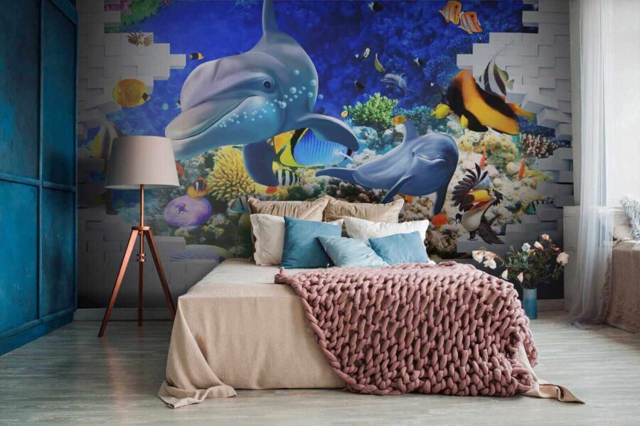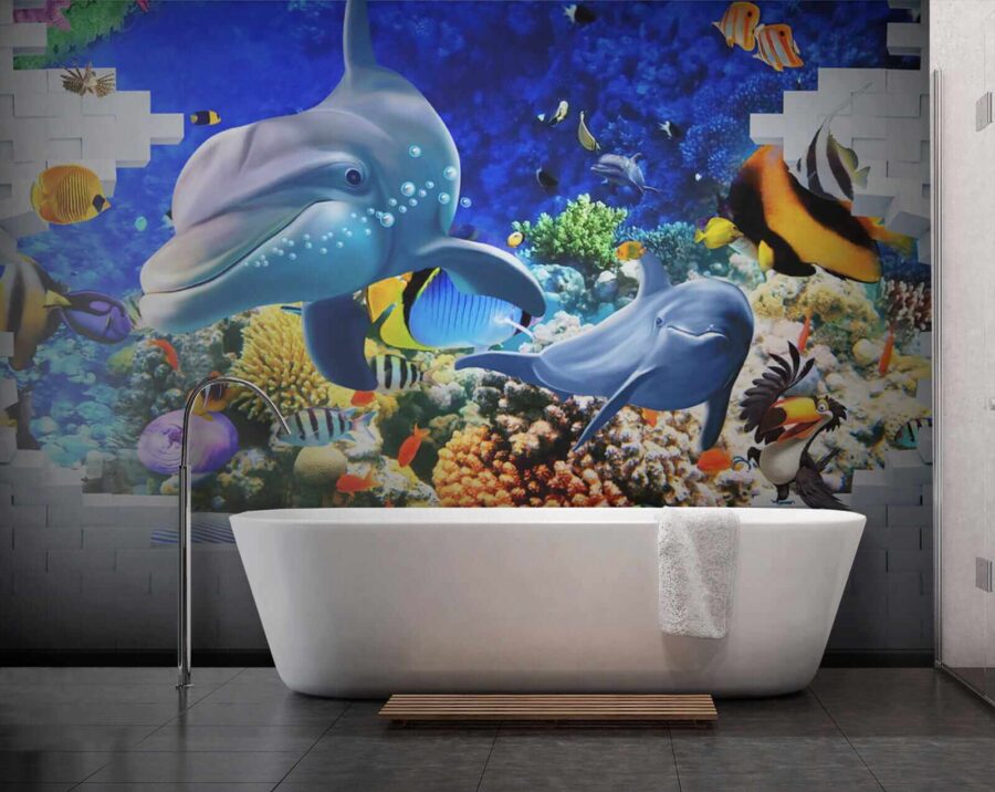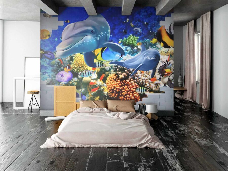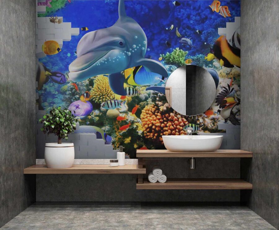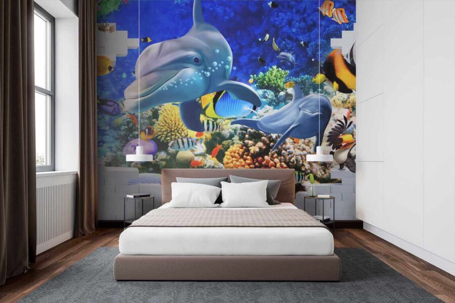 Βουτήξτε σε έναν ζωντανό υποβρύχιο κόσμο με αυτή την τοιχογραφία με ψάρια και παιχνιδιάρικα δελφίνια, που φέρνει μια πινελιά θάλασσας στο σπίτι σας. Φανταστείτε να μπαίνετε στο δωμάτιό σας και να νιώθετε την χαλαρωτική ατμόσφαιρα του ωκεανού να σας κατακλύ Φωτεινά χρώματα χορεύουν γύρω σας — από τα σκανδαλιάρικα ψάρια-κλόουν μέχρι τα κομψά δελφίνια που σας χαρίζουν τα πιο όμορφα χαμόγελά τους. Είναι κάτι περισσότερο από απλή διακόσμηση. Είναι σαν να έχετε ένα κομμάτι του βαθύ μπλε στα χέρια σας. Ιδανικό για παιδικό δωμάτιο, ένα άνετο σαλόνι ή οπουδήποτε αλλού χρειάζεστε μια χαρούμενη πινελιά. Ειλικρινά, ποιος δεν θα ήθελε ένα δελφίνι για συγκάτοικο; Αφήστε αυτή την ταπετσαρία να σας θυμίζει καθημερινά το θαύμα του ωκεανού, χωρίς να χρειαστεί να φορέσετε στολή κατάδυσης!