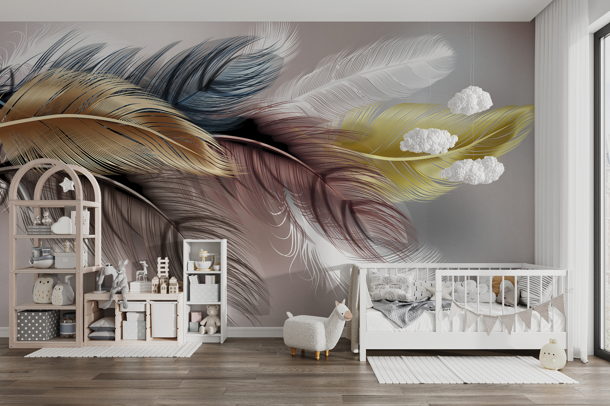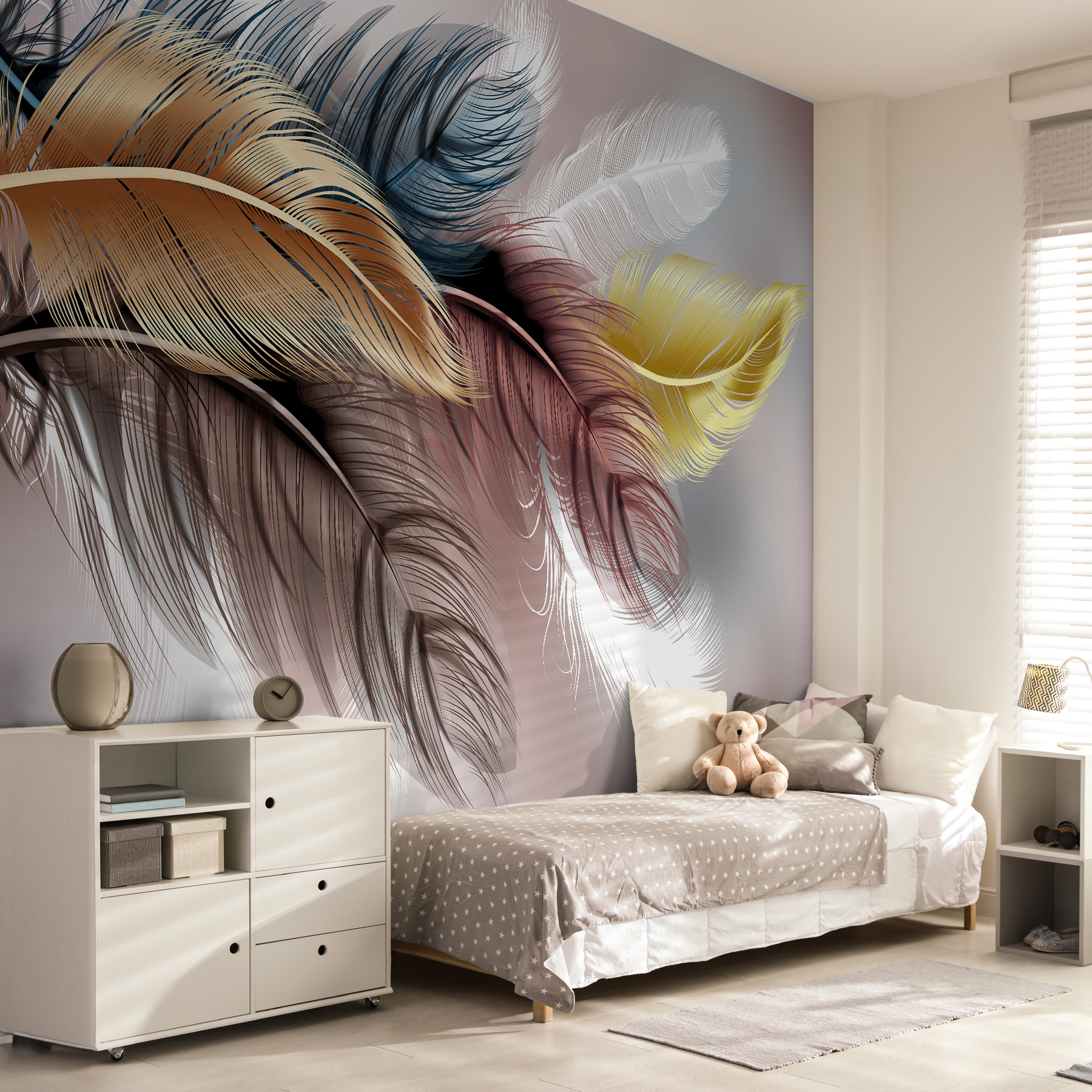 Θέλατε ποτέ ο χώρος σας να μοιάζει με μια γαλήνια απόδραση; Γνωρίστε την τοιχογραφία “Ζωντανά φτερά σε παστέλ αποχρώσεις”. Είναι σαν να αποτυπώνει την ουσία μιας απαλής αύρας – απαλή, ηρεμιστική και λίγο μαγική. Τα φτερά μοιάζουν σχεδόν να αιωρούνται, με χρώματα που ξεπηδούν απαλά, χωρίς όμως να κατακλύζουν. Φανταστείτε να έρχεστε στο σπίτι και να νιώθετε μια στιγμιαία ανάσα φρέσκου αέρα απλά κοιτάζοντας τον τοίχο σας!