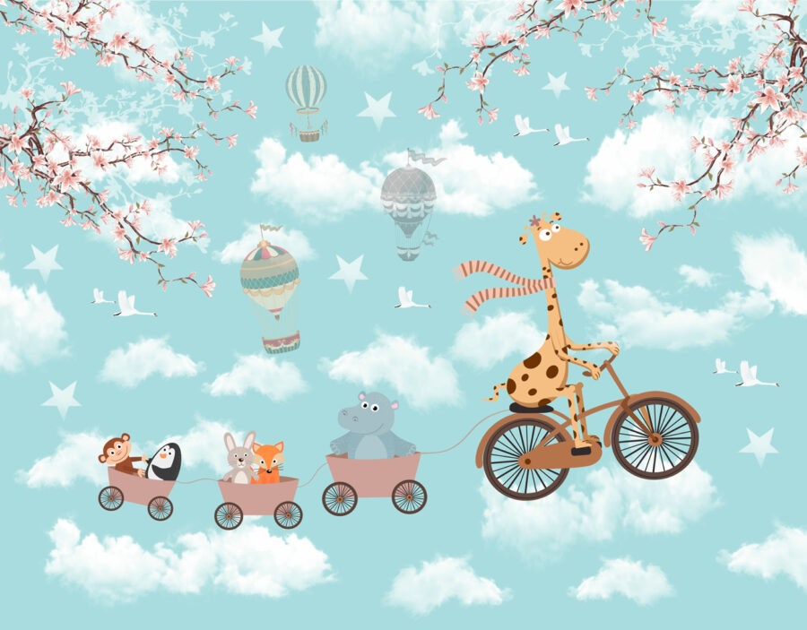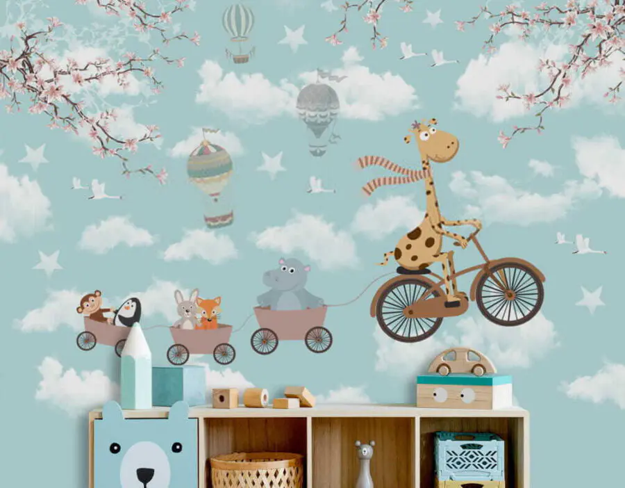 Φανταστείτε αυτή την απολαυστική τοιχογραφία, “Αερόστατο θερμού αέρα στον ουρανό”, να φωτίζει το δωμάτιο του παιδιού σας. Είναι σαν να μπαίνετε σε ένα ονειρικό παραμύθι! Ο απαλός μπλε ουρανός γεμάτος με ιδιόρρυθμα αερόστατα και παιχνιδιάρικα ζωάκια που κάνουν ποδήλατο – πόσο αξιολάτρευτο, έτσι δεν είναι; Ιδανικό για το παιδικό δωμάτιο ή το δωμάτιο παιχνιδιού, είναι βέβαιο ότι θα εξάψει τη φαντασία και ίσως ακόμη και μερικά γέλια. Φανταστείτε το μικρό σας να διαγράφει τα αερόστατα με το δάχτυλό του, με τα μάτια ορθάνοιχτα από θαυμασμό… και τα ζωάκια, ωχ! Μια καμηλοπάρδαλη που κάνει ποδήλατο; Είναι το είδος της γοητείας που κάνει τα παραμύθια να ζωντανεύουν. Επιπλέον, αυτά τα κλαδιά από άνθη κερασιάς – προσθέτουν μια πινελιά ηρεμίας της φύσης. Είτε δημιουργείτε ένα παιδικό δωμάτιο είτε αναβαθμίζετε το χώρο ενός παιδιού, αυτή η τοιχογραφία φέρνει χαρά και μια πινελιά ονειρικής περιπέτειας. Ιδανική για τη δημιουργία αυτών των αγαπημένων παιδικών αναμνήσεων!