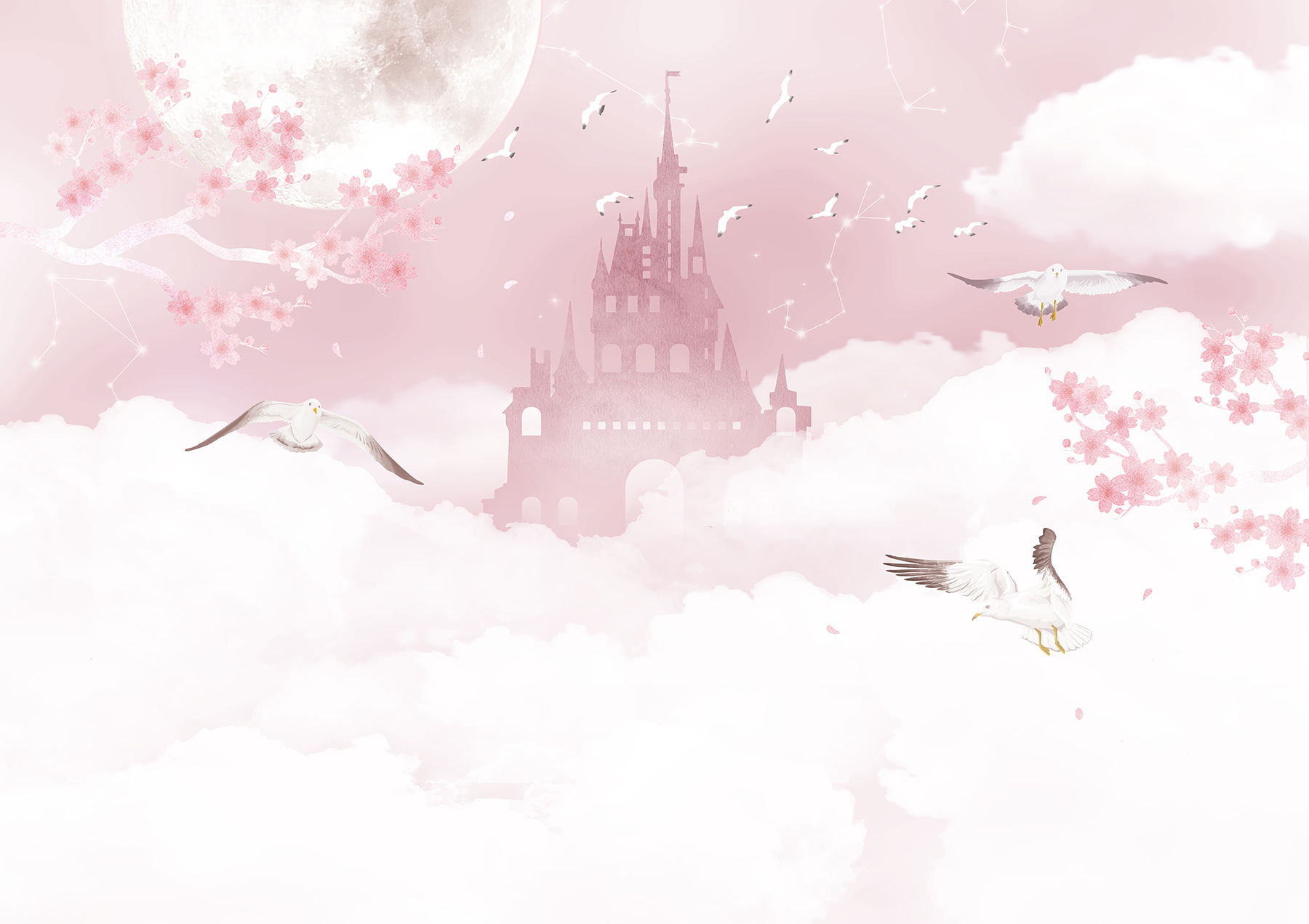 Ελέγξτε αυτό το ονειρικό “Ταπετσαρίες White Bird Flying in the Sky” – είναι σαν να μπαίνετε σε μια ιδιόρρυθμη φαντασίωση! Ιδανική για παιδικά δωμάτια, ειδικά αν το μικρό σας αγαπάει τα παραμύθια και τις μαγευτικές σκηνές. Φανταστείτε αυτό: απαλά, αφράτα σύννεφα, πουλιά που πετούν με ελευθερία, ένα μαγικό κάστρο στο φόντο και ντελικάτα άνθη κερασιάς… Είναι σαν ένα παραμύθι που ζωντανεύει.