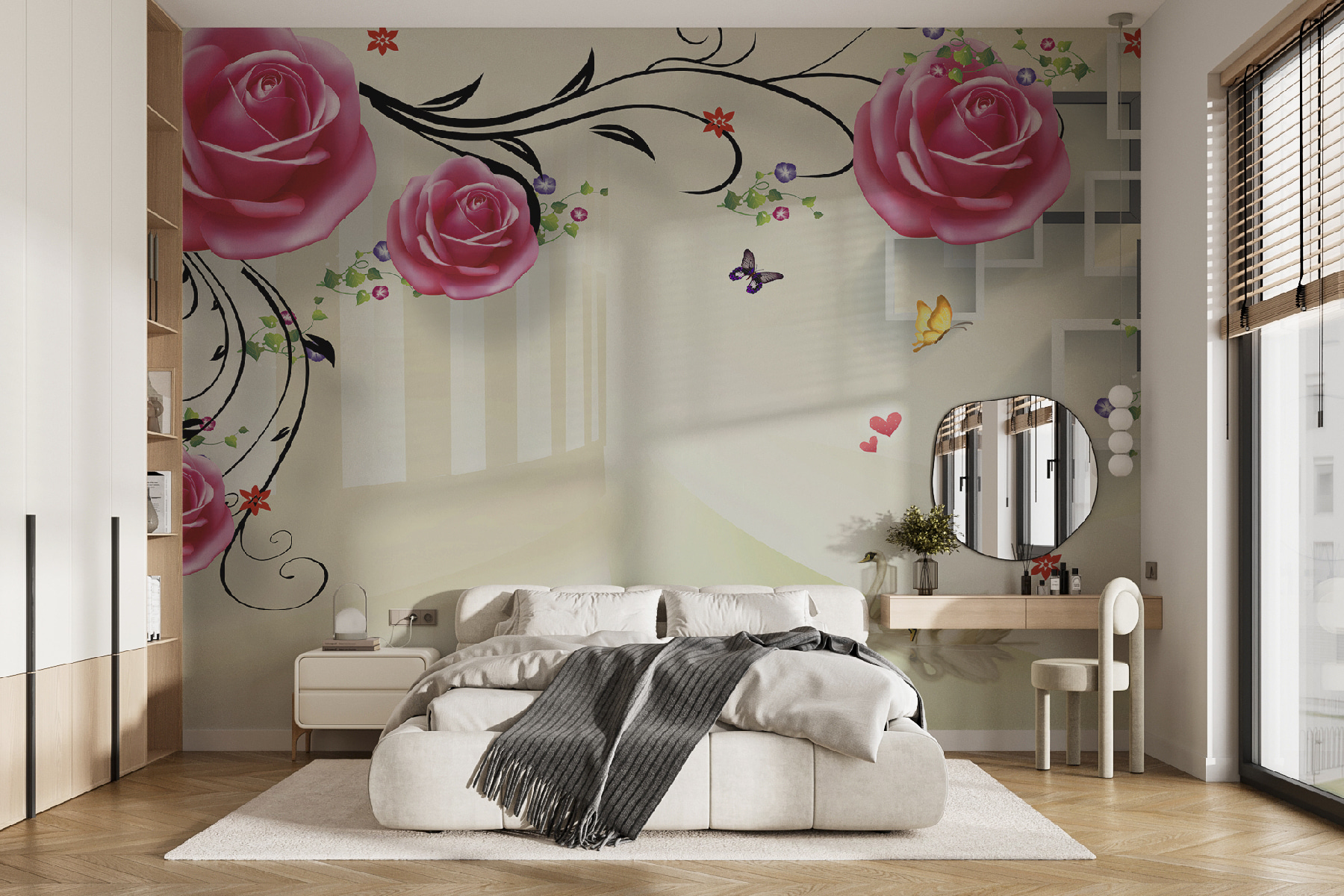 Φανταστείτε να ξυπνάτε μπροστά σε αυτή τη μαγευτική τοιχογραφία κάθε μέρα – είναι σαν να μπαίνετε σε έναν ονειρικό κήπο! Κύκνοι που γλιστρούν με χάρη κάτω από ανθισμένα ροζ τριαντάφυλλα, με πεταλούδες να φτερουγίζουν τριγύρω, δίνουν στο χώρο σας μια πινελιά γαλήνιας μαγείας. Ιδανικό για όποιον θέλει να φέρει ένα κομμάτι της φύσης στους εσωτερικούς χώρους με μια πινελιά κομψότητας. Και αυτά τα τριαντάφυλλα – μοιάζουν σχεδόν σαν να μπορείτε να τα αγγίξετε!