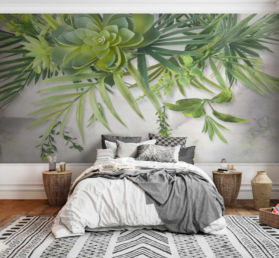 Φανταστείτε να πίνετε τον πρωινό σας καφέ κάτω από ένα καταπράσινο στέγαστρο – χωρίς να βγείτε από το σαλόνι σας! Αυτό το “Ταπετσαρίες Green succulents and leafy branches overhead” μεταμορφώνει κάθε χώρο σε μια καταπράσινη, ήρεμη απόδραση. Αυτά τα ζωηρά παχύφυτα και τα λεπτά φυλλώδη κλαδιά που κρέμονται από πάνω μοιάζουν σχεδόν τρισδιάστατα. Είναι ιδανικό για να αναπνεύσετε λίγο φύση, ειδικά αν έχετε μαύρο αντίχειρα (δεν απαιτείται πότισμα!). Είτε ονειρεύεστε μια αστική ζούγκλα στην πόλη είτε θέλετε να προσθέσετε μια αναζωογονητική πινελιά στη ντουλάπα σας με θέμα τη φύση – αυτή η τοιχογραφία σας βρίσκει. Είναι σαν να έχετε ένα κομμάτι βοτανικού κήπου μέσα σας – χωρίς τα ενοχλητικά ζωύφια! Προσθέστε στιγμιαία ζεν σε οποιοδήποτε δωμάτιο… και ίσως λίγο φθόνο από τους φίλους σας.
