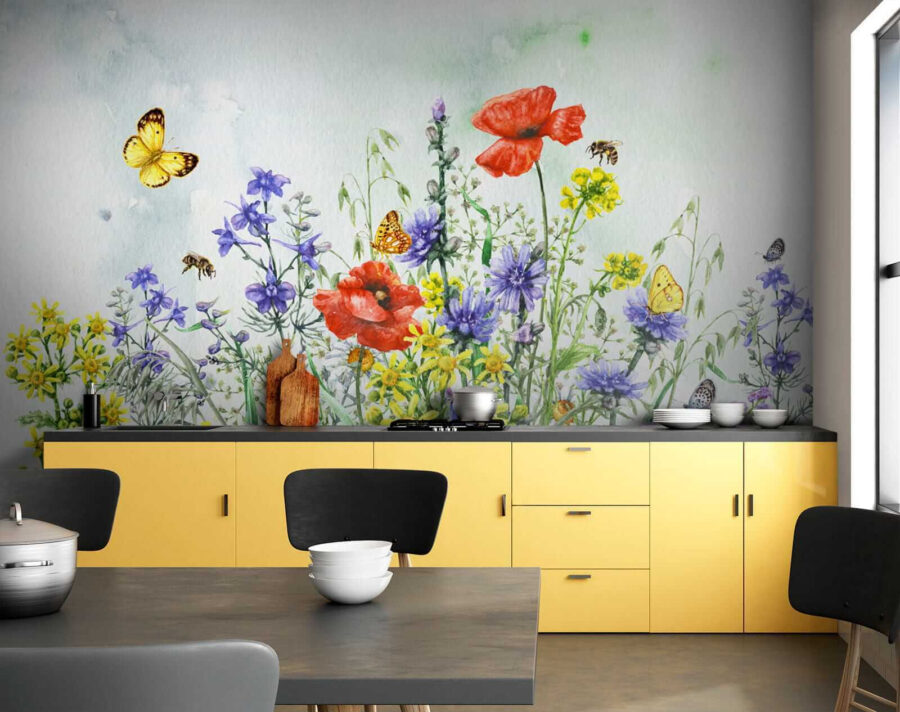 Αυτή η τοιχογραφία δεν είναι απλώς διακόσμηση, αλλά μεταμορφώνει ολόκληρη τη διάθεση ενός χώρου. Σκεφτείτε χαλαρά κυριακάτικα πρωινά με έναν καφέ στο χέρι, απολαμβάνοντας τα πολύχρωμα άνθη και τις παιχνιδιάρικες πεταλούδες – καθαρή ευτυχία. Με τη γοητεία της ακουαρέλας, είναι ιδανική για κάθε δωμάτιο που χρειάζεται ένα άγγιγμα από τη μαγεία της φύσης. Μπορεί ακόμη και να δείτε τον εαυτό σας να ονειρεύεται ότι βρίσκεται σε ένα λιβάδι με κάθε ματιά. Δώστε στους τοίχους σας μια ιστορία να διηγηθείτε. 🌸🦋