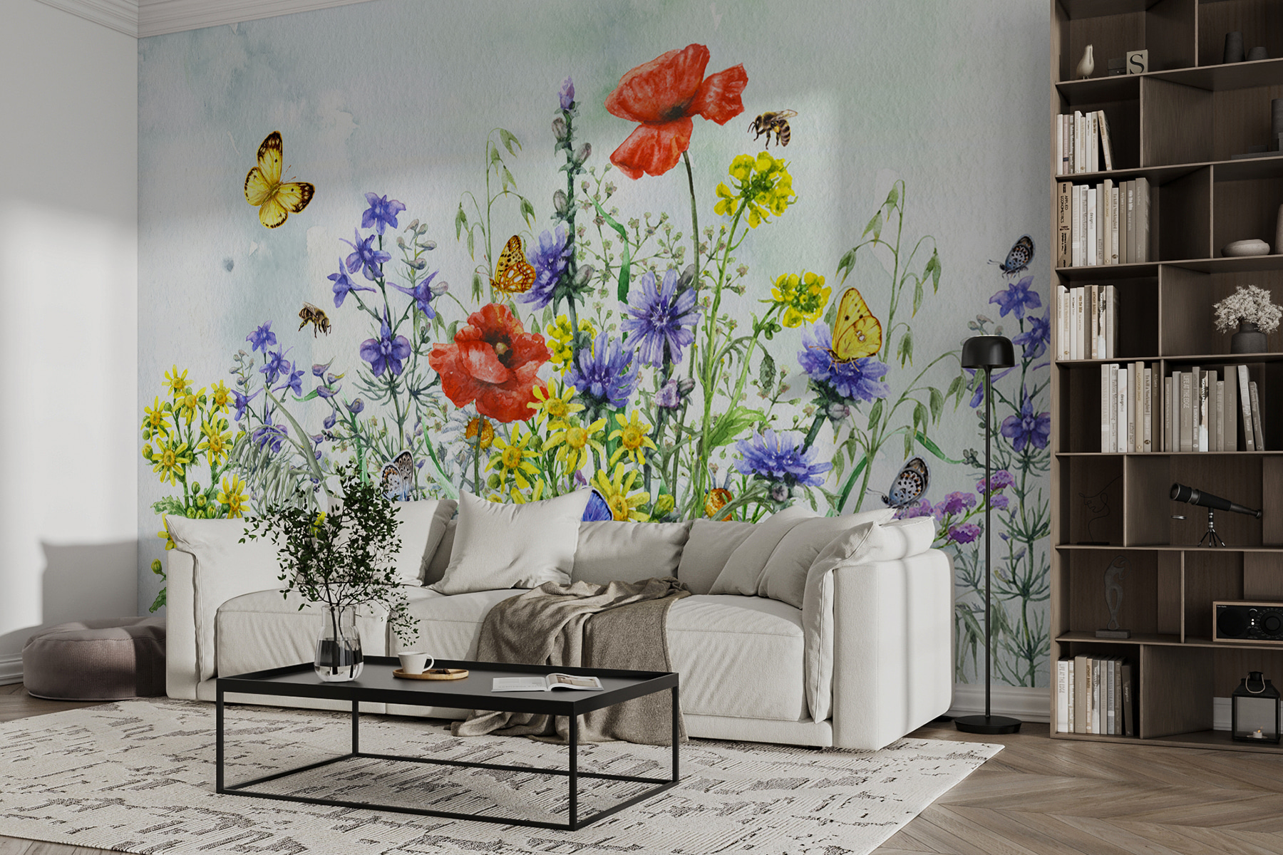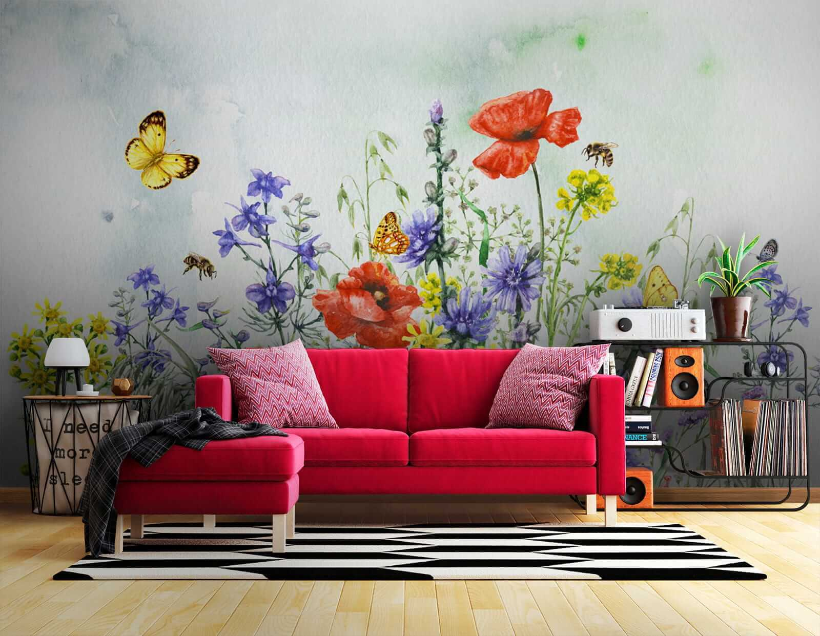 Αυτή η τοιχογραφία δεν είναι απλώς διακόσμηση, αλλά μεταμορφώνει ολόκληρη τη διάθεση ενός χώρου. Σκεφτείτε χαλαρά κυριακάτικα πρωινά με έναν καφέ στο χέρι, απολαμβάνοντας τα πολύχρωμα άνθη και τις παιχνιδιάρικες πεταλούδες – καθαρή ευτυχία. Με τη γοητεία της ακουαρέλας, είναι ιδανική για κάθε δωμάτιο που χρειάζεται ένα άγγιγμα από τη μαγεία της φύσης. Μπορεί ακόμη και να δείτε τον εαυτό σας να ονειρεύεται ότι βρίσκεται σε ένα λιβάδι με κάθε ματιά. Δώστε στους τοίχους σας μια ιστορία να διηγηθείτε. 🌸🦋