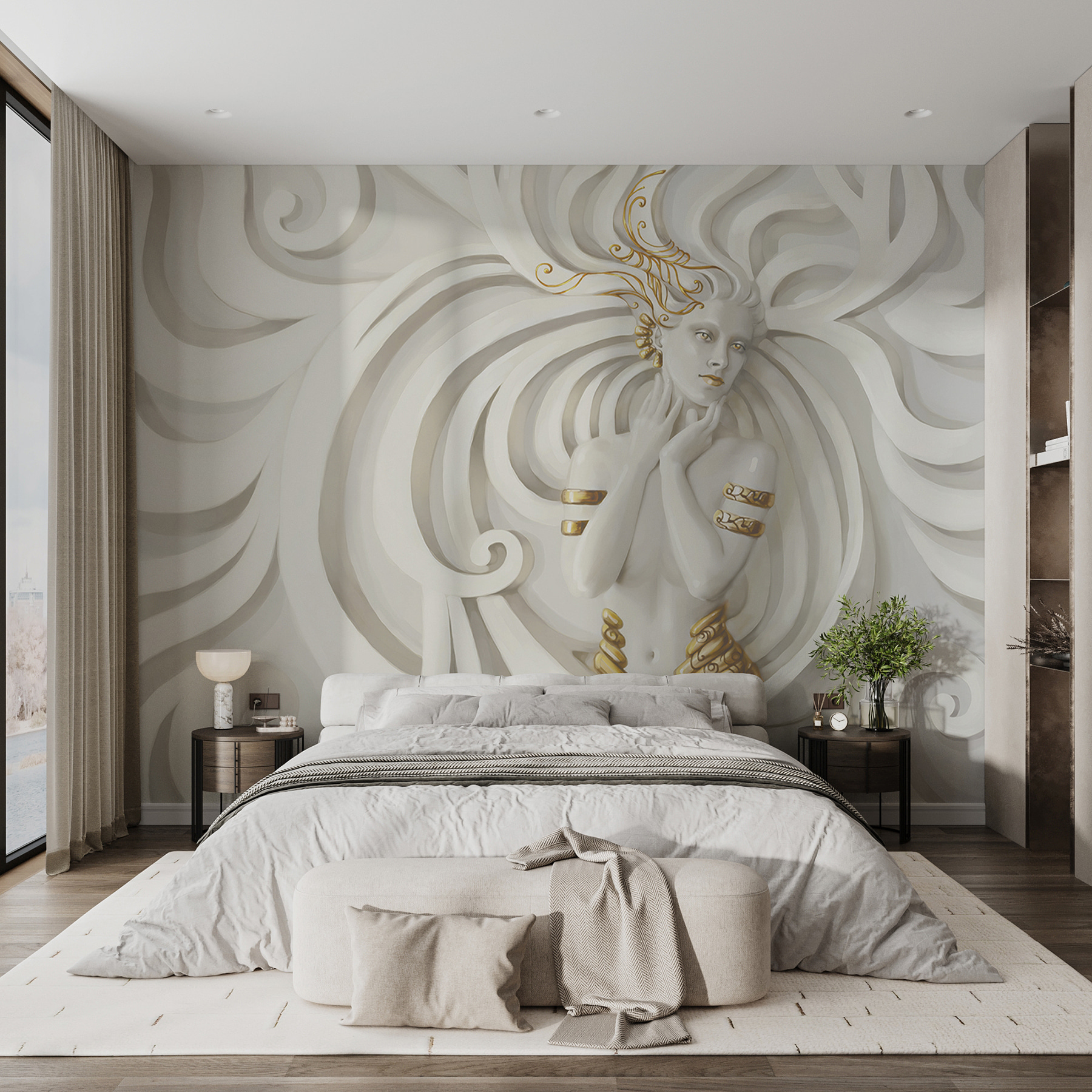 Μεταμορφώστε οποιονδήποτε χώρο με αυτή την εκπληκτική τοιχογραφία τοίχου με μια κομψή φιγούρα τυλιγμένη σε στροβιλιζόμενα μοτίβα. Είναι σαν να μπαίνετε σε ένα όνειρο όπου η τέχνη συναντά τη γαλήνη. Φανταστείτε να φιλοξενείτε φίλους και να βλέπετε τα σαγόνια τους να πέφτουν όταν βλέπουν αυτό το έργο – θα προκαλέσει σίγουρα συζητήσεις. Ο τρόπος με τον οποίο οι καμπύλες χορεύουν γύρω από τη φιγούρα σε τραβάει, προσκαλώντας σε μια στιγμή παύσης. Ιδανικό για μια άνετη γωνιά ανάγνωσης ή για έναν τοίχο στο σαλόνι σας, προσθέτει μια μοναδική γοητεία και έναν υπαινιγμό ιδιοτροπίας σε κάθε χώρο. Ποιος ήξερε ότι η τέχνη θα μπορούσε να έχει τέτοια ατμόσφαιρα;