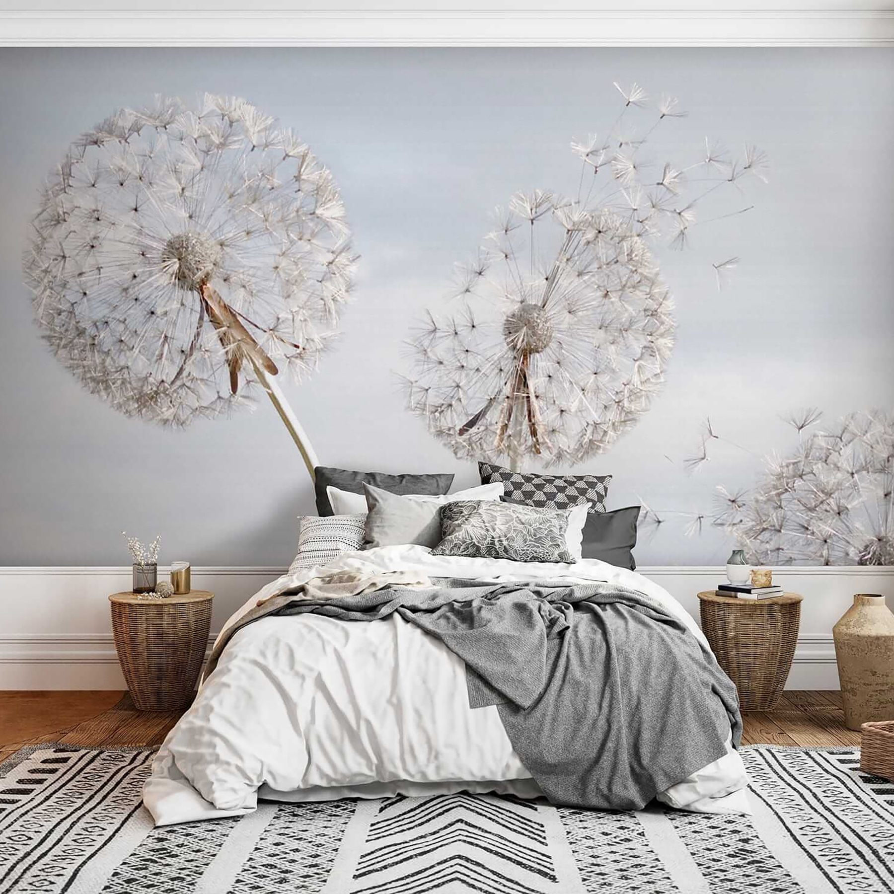 Δεν είναι απλά μαγευτική αυτή η τοιχογραφία; Φανταστείτε να μπαίνετε σε ένα δωμάτιο που κοσμείται από αυτό το έργο “Giant Dandelions Sway in Breeze” – μπορείτε σχεδόν να αισθανθείτε τον απαλό άνεμο να φυσάει αυτούς τους χνουδωτούς σπόρους μακριά. Είναι σαν να φέρνετε ένα κομμάτι της φύσης σε εσωτερικούς χώρους, αλλά με μια βουτιά μαγείας. Αυτή η τοιχογραφία προσγειώνεται ακριβώς στο γλυκό σημείο, αναμειγνύοντας αυτά τα κομψά “Λουλούδια” και έναν υπαινιγμό “τρισδιάστατου” θαύματος, μεταμορφώνοντας αβίαστα κάθε χώρο.