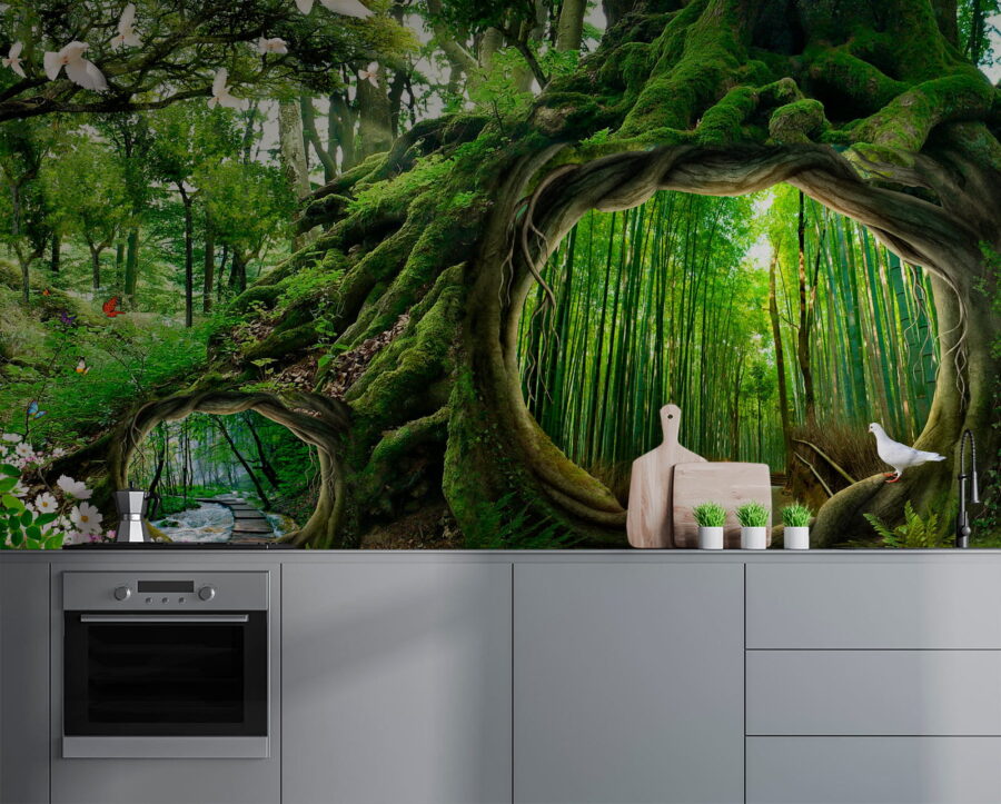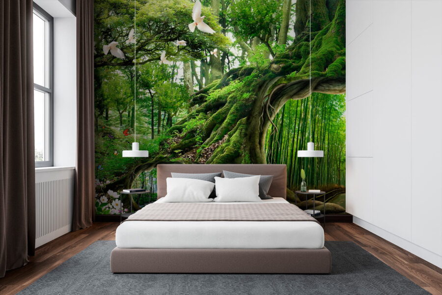 Μεταμορφώστε τον χώρο σας σε ένα ζεστό καταφύγιο στο δάσος με την ταπετσαρία τοίχου «Δέντρο με τρύπα στη μέση». Φανταστείτε να μπαίνετε στο δωμάτιό σας και να νιώθετε σαν να περιπλανιέστε σε ένα μαγικό δάσος. Αυτή η ταπετσαρία αποτυπώνει την ουσία της φύσης, με ζωντανά πράσινα χρώματα και φανταστικές μικρές λεπτομέρειες, όπως πεταλούδες και απαλά περιστέρια. Το δέντρο, με την ελκυστική κοιλότητα του, παίζει παιχνίδια με το μυαλό — είναι σαν μια πύλη προς έναν άλλο μαγευτικό κόσμο! Ιδανική για ονειροπόλους ή όσους χρειάζονται λίγη θεραπεία από τη φύση. Σκεφτείτε την ως μια καθημερινή υπενθύμιση να αναπνέετε και να χαλαρώνετε, φέρνοντας το εξωτερικό μέσα στο σπίτι, ενώ απολαμβάνετε τις ανέσεις του. Είναι μια ταπετσαρία που ψιθυρίζει ιστορίες περιπέτειας και ηρεμίας, κάνοντας κάθε ματιά μια μικρή απόδραση. Πώς θα μπορούσε κανείς να αντισταθεί;
