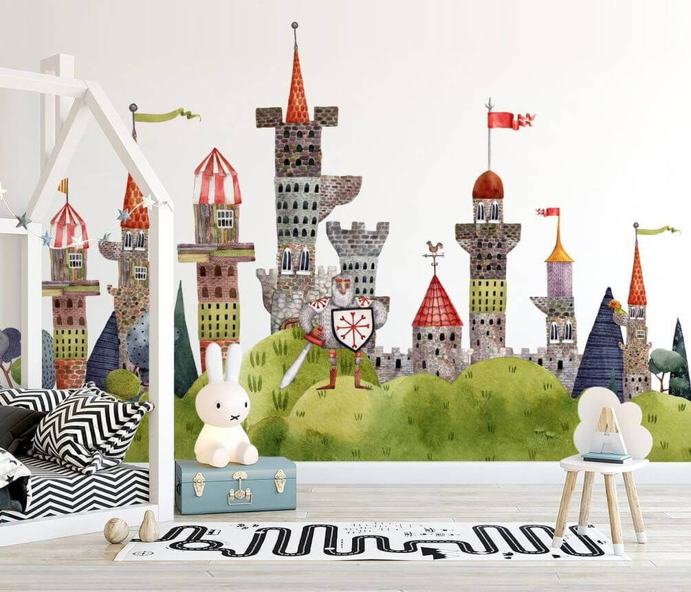 Φανταστείτε το μικρό σας να ξυπνάει κάθε πρωί στο δικό του μεσαιωνικό βασίλειο! Ένας γενναίος ιππότης, με το σπαθί στο χέρι, να φυλάει τους πύργους του κάστρου- είναι σαν να έχει έναν φύλακα για τα όνειρά του. Και αυτοί οι πύργοι… δείτε αυτές τις ιδιόμορφες, πολύχρωμες στέγες! Μοιάζουν σαν να ξεπήδησαν κατευθείαν από παραμύθι.