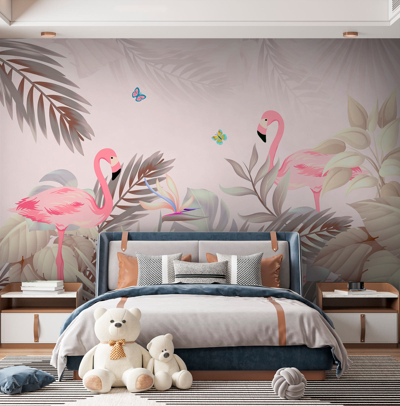 Φανταστείτε να μπαίνετε σε ένα δωμάτιο που μοιάζει με τροπικό παράδεισο – τα απαλά χρώματα και οι εξαιρετικές λεπτομέρειες αυτής της τοιχογραφίας “Μπλε και ροζ πεταλούδα” φέρνουν τόση ζωή σε κάθε χώρο! Με όμορφα φλαμίνγκο και ζωντανές πεταλούδες, είναι σαν μια μίνι-διακοπές στον τοίχο σας. Ιδανική για όσους αγαπούν τη μοναδική διακόσμηση, αυτή η τοιχογραφία από τις κατηγορίες “Τοιχογραφίες τοίχου με ζώα” και “Τοιχογραφίες τοίχου με φύση” μετατρέπει κάθε δωμάτιο σε μια ονειρική, χαλαρωτική απόδραση.