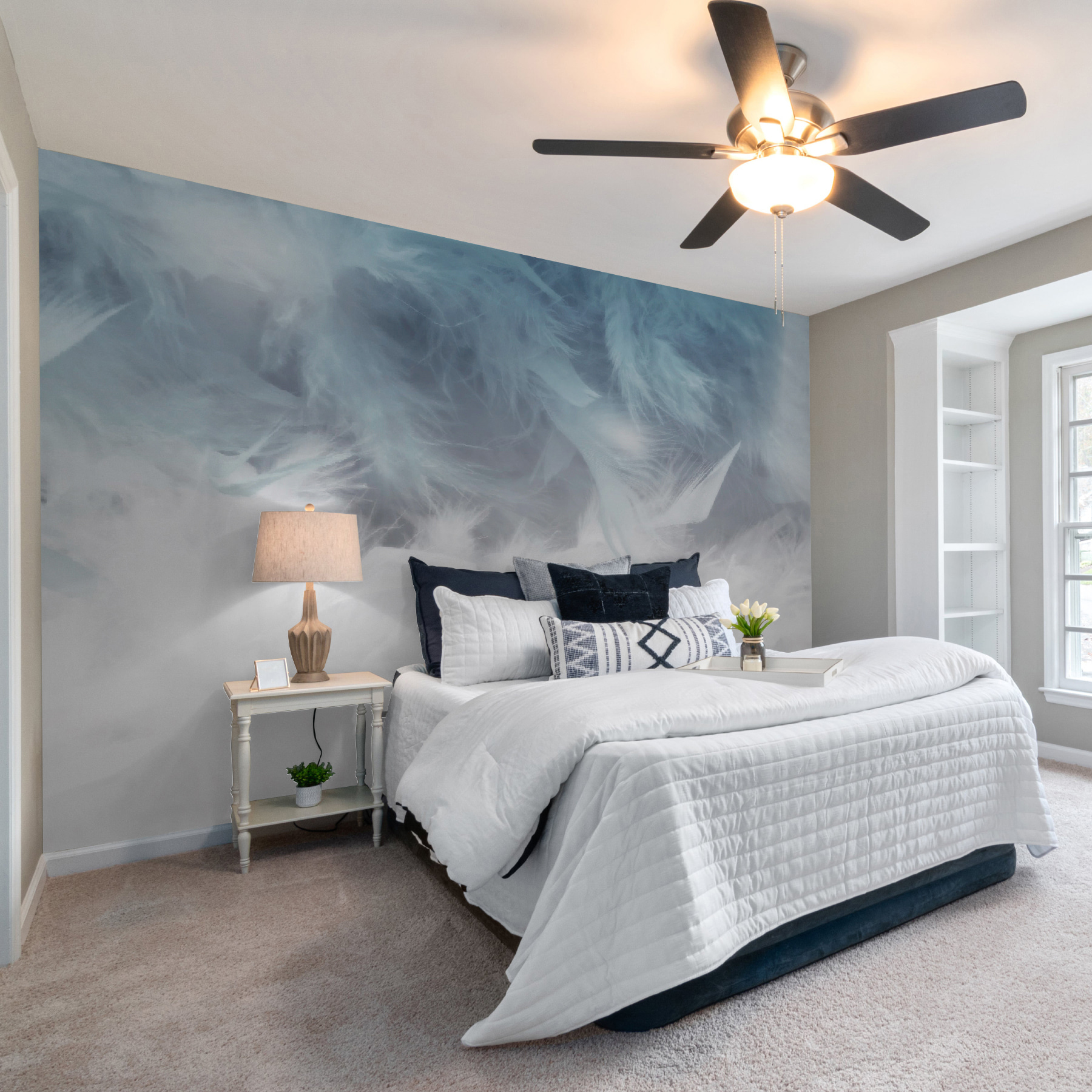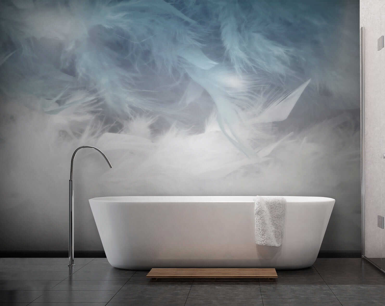 Μεταμορφώστε οποιοδήποτε δωμάτιο σε μια γαλήνια όαση με την τοιχογραφία “Λευκά φτερά σε μια επιφάνεια”. Φανταστείτε να μπαίνετε σε έναν χώρο που αισθάνεται ελαφρύς, ευάερος και λίγο ιδιόρρυθμος. Αυτά τα λεπτεπίλεπτα φτερά, που αναμειγνύουν απαλά τις αποχρώσεις του λευκού και του ανοιχτού μπλε, δημιουργούν μια ειρηνική ατμόσφαιρα, σαν ένα απαλό αεράκι που ψιθυρίζει μέσα στα δέντρα.