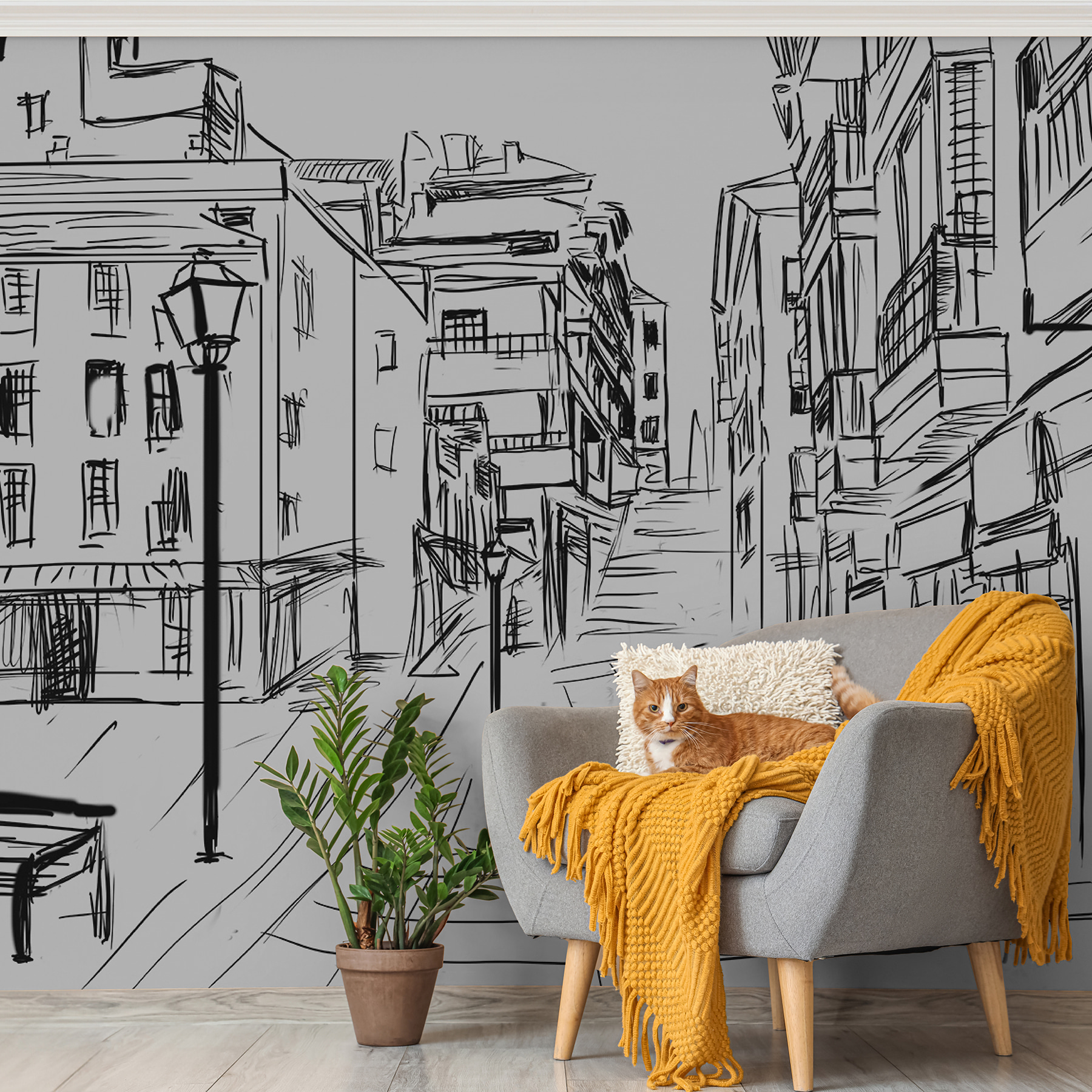 Αυτή η τοιχογραφία είναι ιδανική για όσους έχουν αδυναμία στην αρχιτεκτονική και αγαπούν να προσθέτουν μια πινελιά εκλέπτυνσης στο χώρο τους. Επιπλέον, η απλότητα της έχει και λίγο χιούμορ – σαν να σας προκαλεί να πιάσετε ένα μολύβι και να προσθέσετε τις δικές σας μικρές λεπτομέρειες. Ιδανικό για να δημιουργήσετε ένα κομμάτι συζήτησης που είναι γεμάτο γοητεία, αλλά ταυτόχρονα μοντέρνο και φρέσκο. Ξεχάστε τους απλούς τοίχους – ας φέρουμε λίγη καλλιτεχνική δόνηση στη ζωή σας!