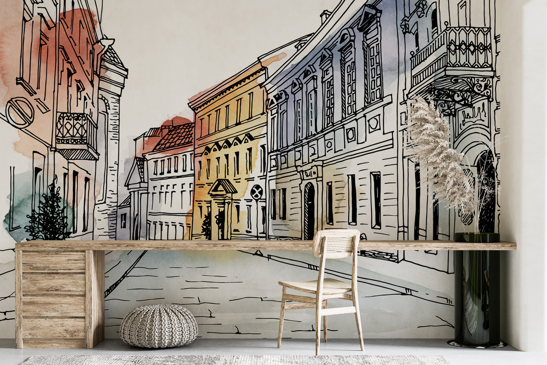 Φανταστείτε το εξής: μπαίνετε στο σαλόνι σας και μπαμ! μεταφέρεστε αμέσως σε έναν γοητευτικό ευρωπαϊκό δρόμο. Αυτή η “τοιχογραφία τοίχου Σχέδιο ενός κτιρίου” φέρνει μια πινελιά αρχιτεκτονικής και κομψότητας του παλιού κόσμου στους τοίχους σας. Φτιαγμένη για τους λάτρεις των όμορφων σχεδίων και των μοναδικών χώρων, αυτή η τοιχογραφία σας προσκαλεί να περιπλανηθείτε σε αυτούς τους πλακόστρωτους δρόμους κάθε φορά που ρίχνετε μια ματιά. Χρειάζεστε έναυσμα για συζήτηση; Εδώ είναι. Οι καλεσμένοι σας μπορεί απλώς να χαθούν στις περίπλοκες γραμμές και τις απαλές πιτσιλιές ακουαρέλας. Ιδανικό για να δώσετε σε κάθε δωμάτιο αυτή τη ζεστή αλλά και εκλεπτυσμένη ατμόσφαιρα. Είναι σαν να έχετε ένα μίνι σημείο διακοπών στο σπίτι σας – χωρίς το τζετ λαγκ. Πολύ καλύτερο από το απλό χρώμα, δεν νομίζετε;