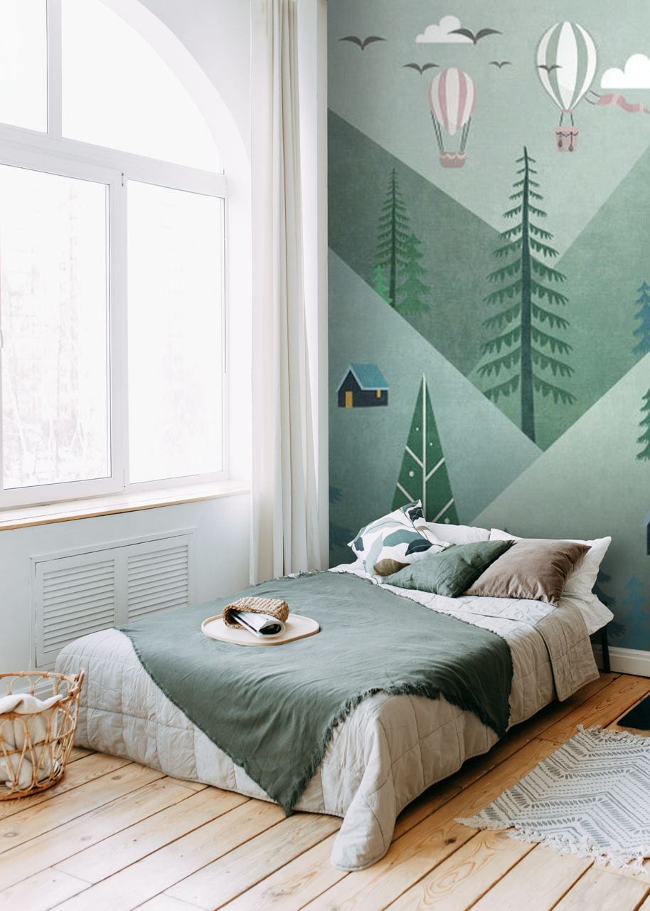 Μεταμορφώστε τον χώρο σας σε ένα φανταστικό παραμύθι με την «Τοιχογραφία με δέντρα και αερόστατα». Φανταστείτε το εξής: ζωντανά δέντρα που λικνίζονται απαλά στον αέρα, ενώ πολύχρωμα αερόστατα αιωρούνται νωχελικά πάνω από αυτά. Είναι σαν ένα γοητευτικό όνειρο που δεν τελειώνει ποτέ. Ιδανική για παιδικά δωμάτια ή οποιονδήποτε χώρο που χρειάζεται μια πινελιά μαγείας, αυτή η τοιχογραφία προκαλεί χαρά και φαντασία. Φανταστείτε τις ιστορίες που θα μπορούσε να εμπνεύσει: περιπέτειες στον ουρανό, άνετα καταφύγια σε καλύβες ή ακόμα και πικνίκ στο δάσος. Τα χαλαρωτικά χρώματα φέρνουν μια αίσθηση ηρεμίας, βοηθώντας σας να χαλαρώσετε. Επιπλέον, ποιος δεν θα ήθελε μια καθημερινή υπενθύμιση να κοιτάξει ψηλά και να ονειρευτεί μεγάλα πράγματα;