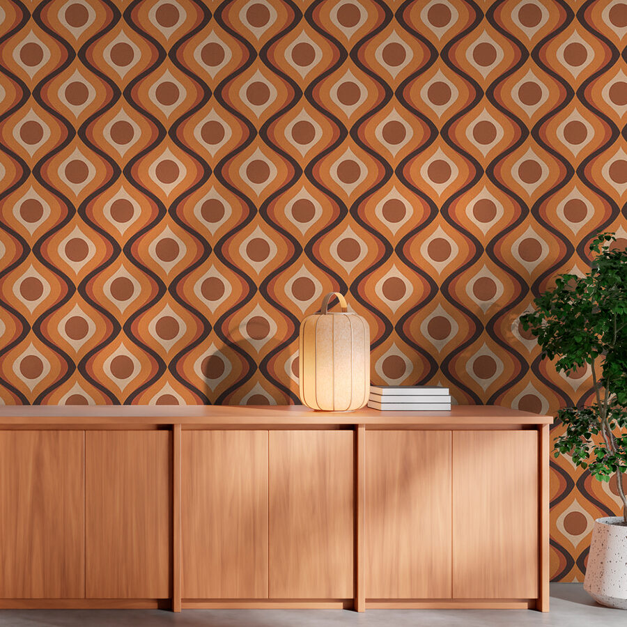 Ελέγξτε αυτή την πολύ ωραία ρετρό γεωμετρική τοιχογραφία – είναι ένα απόλυτο vibe! Φανταστείτε αυτά τα γήινα καφέ και τα πλούσια πορτοκαλί να αναμειγνύονται άψογα στον τοίχο σας. Είναι σαν να γυρίζετε πίσω στη δεκαετία του ’70, αλλά πολύ πιο κομψά. Ιδανική για να αναβαθμίσετε ένα σαλόνι, να δώσετε χαρακτήρα στο γραφείο σας ή ακόμη και να προσθέσετε μια ιδιόμορφη πινελιά σε έναν διάδρομο. Φανταστείτε να πίνετε καφέ και να νιώθετε άνετα και νοσταλγικά με αυτό το μοτίβο να σας περιβάλλει. Είναι το είδος του σχεδίου που θα κάνει τους καλεσμένους να λένε: “Ουάου, λατρεύω τον τοίχο σας!” Σοβαρά, αυτή η τοιχογραφία αλλάζει τα δεδομένα. Πίστεψέ μας, μόλις τοποθετηθεί, δεν θα θέλεις να την κατεβάσεις.