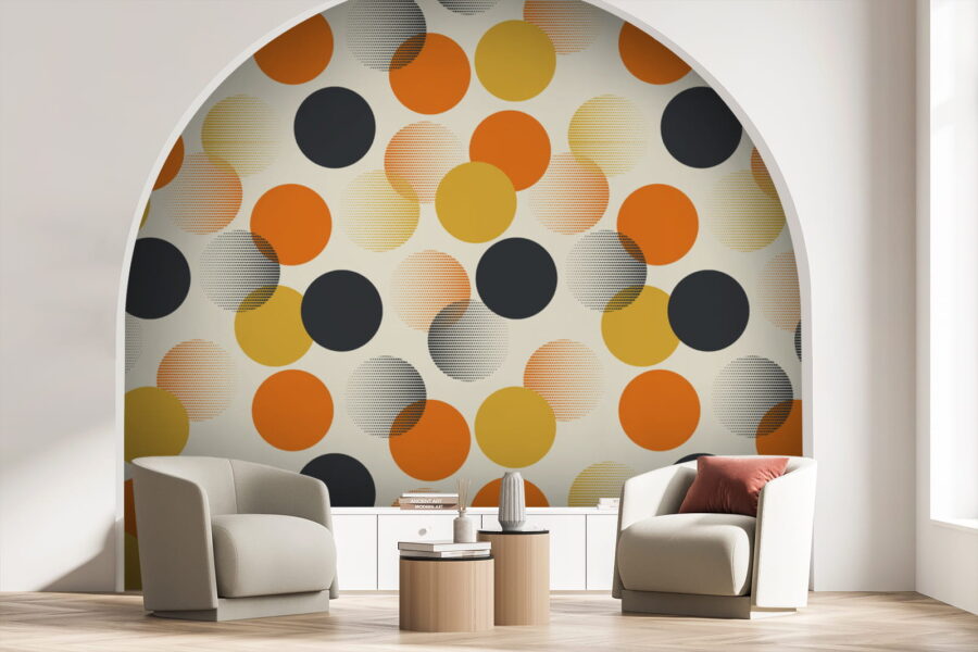Dive into the vibrant world of this orange and black circles mural—perfect for shaking things up! Imagine stepping into a room adorned with these playful patterns, where every glance brings a little pep to your step. The warm tones feel cozy, like a sunny afternoon, while the black circles add a fun touch of mystery. It’s like your walls just received a fabulous makeover, and who doesn’t love a glow-up?