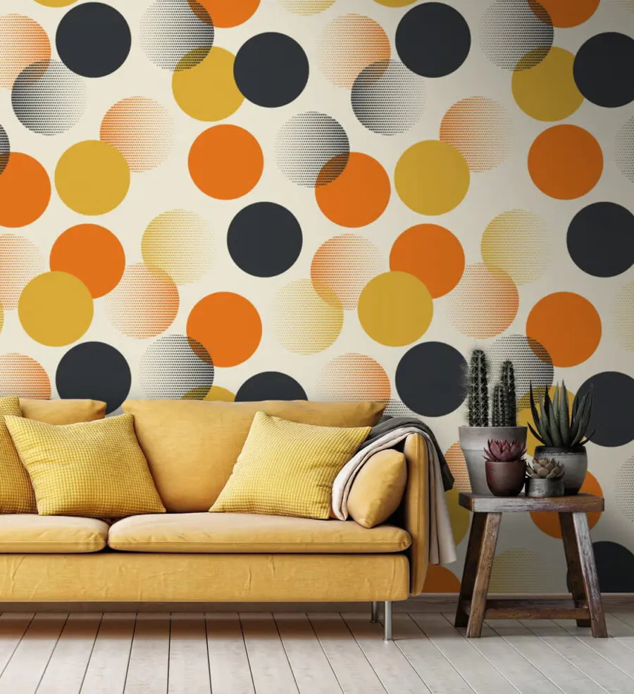 Dive into the vibrant world of this orange and black circles mural—perfect for shaking things up! Imagine stepping into a room adorned with these playful patterns, where every glance brings a little pep to your step. The warm tones feel cozy, like a sunny afternoon, while the black circles add a fun touch of mystery. It’s like your walls just received a fabulous makeover, and who doesn’t love a glow-up?
