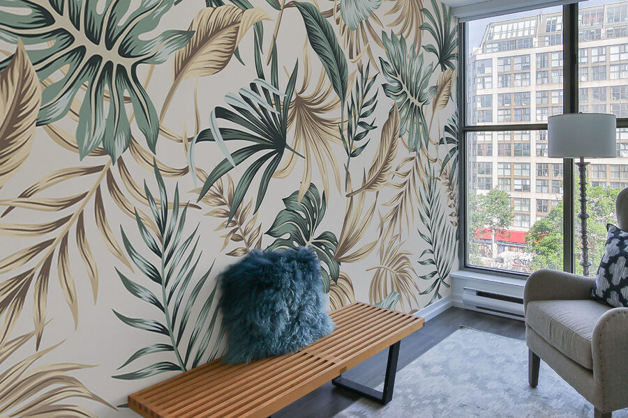 Μεταμορφώστε το χώρο σας με αυτή την πανέμορφη τοιχογραφία με τροπικά φύλλα σε χαλαρωτικό μπεζ φόντο. Φανταστείτε να μπαίνετε στο δωμάτιό σας και να αισθάνεστε σαν να έχετε περιπλανηθεί σε ένα γαλήνιο καταφύγιο ζούγκλας. Αυτά τα πλούσια πράσινα ξεπροβάλλουν πάνω στον απαλό καμβά, δημιουργώντας μια ατμόσφαιρα που είναι τόσο ηρεμιστική όσο και ενεργητική. Ιδανικό για σαλόνια, υπνοδωμάτια ή ακόμη και για μια ζεστή γωνιά ανάγνωσης, προσκαλεί μια ανάσα φρέσκου αέρα. Οι φίλοι θα αναρωτιούνται αν έχετε προσλάβει διακοσμητή, αλλά στην πραγματικότητα, είστε μόνο εσείς και το εξαιρετικό σας γούστο που κάνουν κάθε γωνιά έναν μικρό παράδεισο. Λοιπόν, τι περιμένετε; Βυθιστείτε στα φυλλώματα!