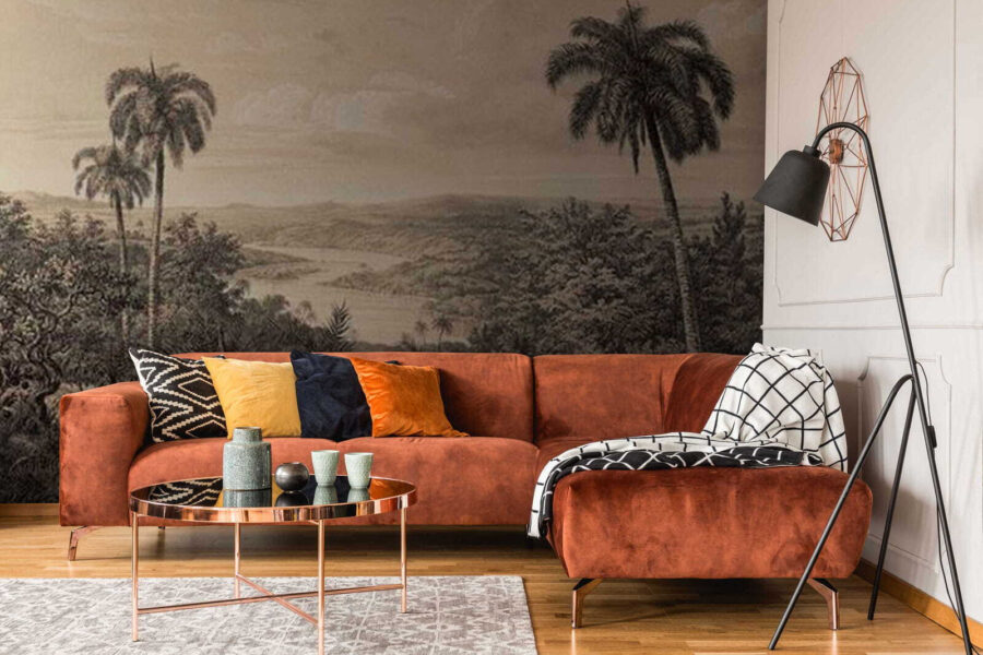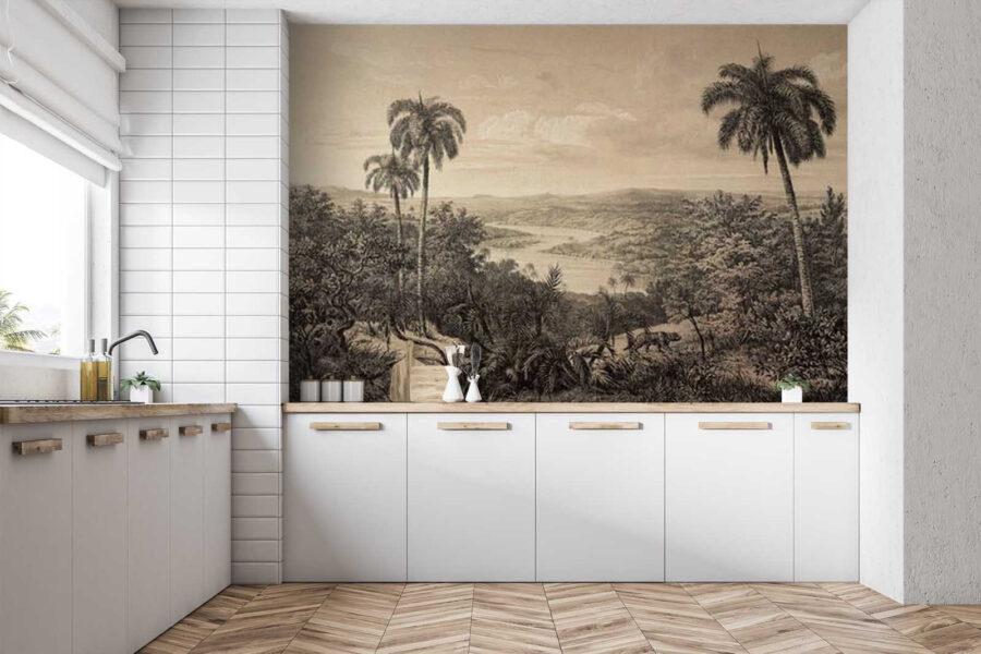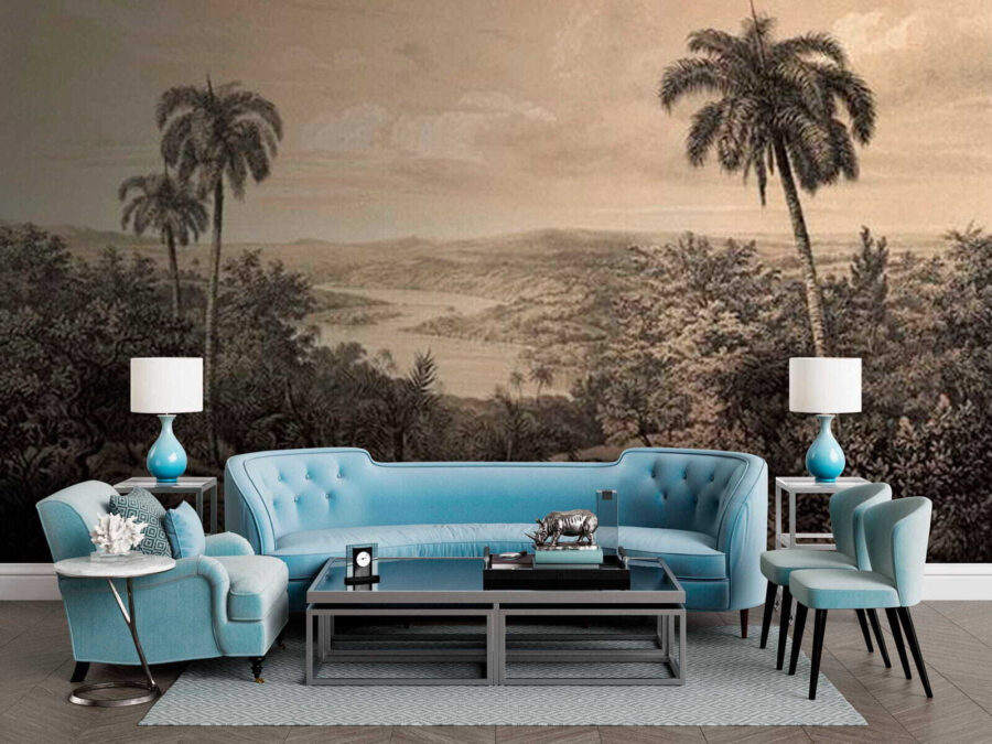 Φανταστείτε να μπαίνετε σε έναν γαλήνιο παράδεισο κάθε φορά που εισέρχεστε σε ένα δωμάτιο — αυτή η ταπετσαρία το κάνει δυνατό! Το «Τοπίο με δέντρα και ποτάμι» αποτυπώνει την ουσία της φύσης με τους ζωντανούς φοίνικες και το ελικοειδές ποτάμι, προσφέροντας μια γαλήνια απόδραση από την καθημερινή φασαρία. Ιδανικό για μια ζεστή γωνιά ανάγνωσης ή ως διακοσμητικό στοιχείο σε ένα σαλόνι, σας προσκαλεί σε ονειροπολήσεις για καταπράσινες αποδράσεις. Φανταστείτε να πίνετε τον πρωινό σας καφέ ενώ αγναντεύετε το καταπράσινο τοπίο. Είναι σαν να φέρνετε ένα κομμάτι της φύσης μέσα στο σπίτι σας. Επιπλέον, οι απαλοί τόνοι δημιουργούν μια ήρεμη ατμόσφαιρα, καθιστώντας την ταπετσαρία ένα υπέροχο φόντο για όλες τις αγαπημένες σας στιγμές. Τι θα μπορούσε να είναι πιο ανακουφιστικό;