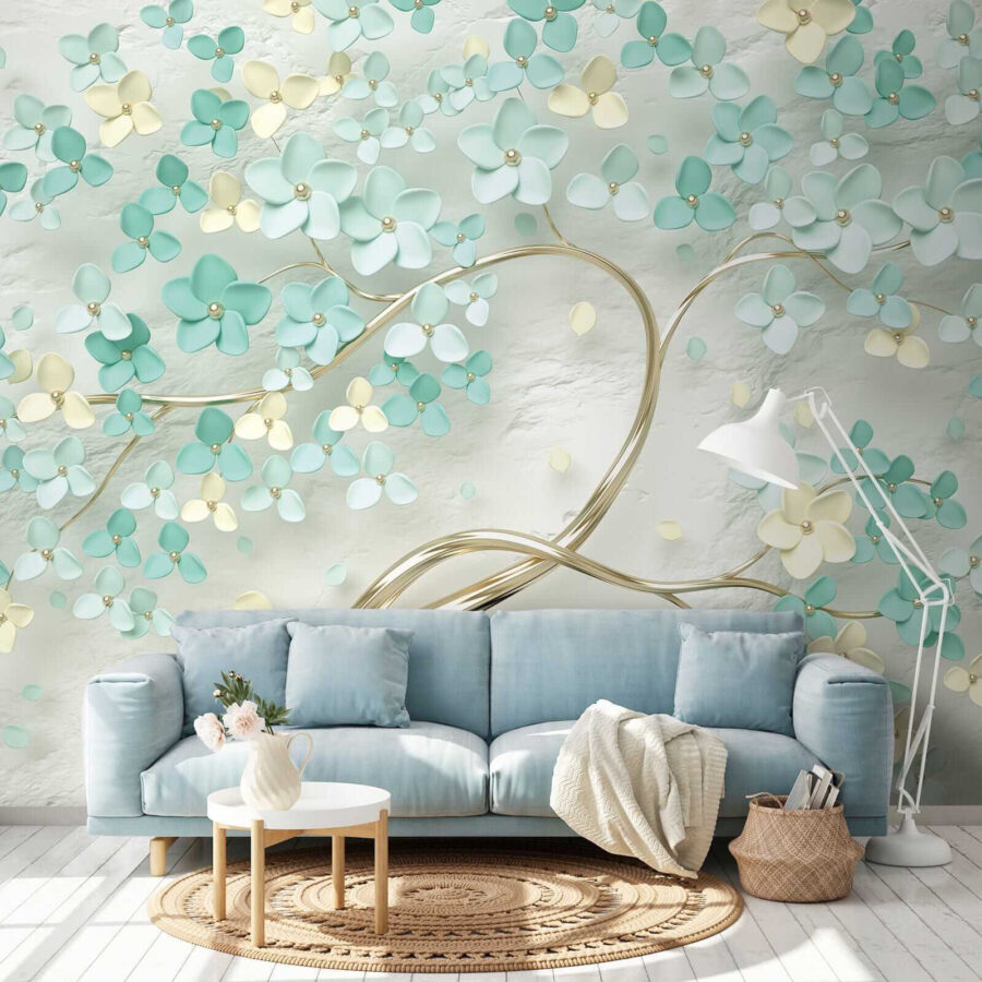 Μεταμορφώστε οποιοδήποτε δωμάτιο με αυτή την εκπληκτική τοιχογραφία, όπου τα ντελικάτα άνθη χορεύουν σε ένα απαλό φόντο. Φανταστείτε να μπαίνετε σε έναν ηλιόλουστο κήπο, όπου τα καταπραϋντικά χρώματα του τιρκουάζ και του κρεμ σας αγκαλιάζουν απαλά. Είναι σαν να φέρνετε μια ανάσα άνοιξης σε εσωτερικούς χώρους – δεν απαιτείται πότισμα! Αυτή η τοιχογραφία όχι μόνο προσθέτει γοητεία, αλλά δημιουργεί επίσης μια γαλήνια ατμόσφαιρα που ψιθυρίζει χαλάρωση. Φανταστείτε να πίνετε τον πρωινό σας καφέ μπροστά της, νιώθοντας αυτή την ηρεμία να σας κατακλύζει ή να φτιάχνετε έναν άνετο χώρο για ανάγνωση αργά το βράδυ. Γιατί, λοιπόν, να μην αφήσετε τους τοίχους σας να ανθίσουν;