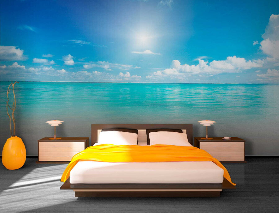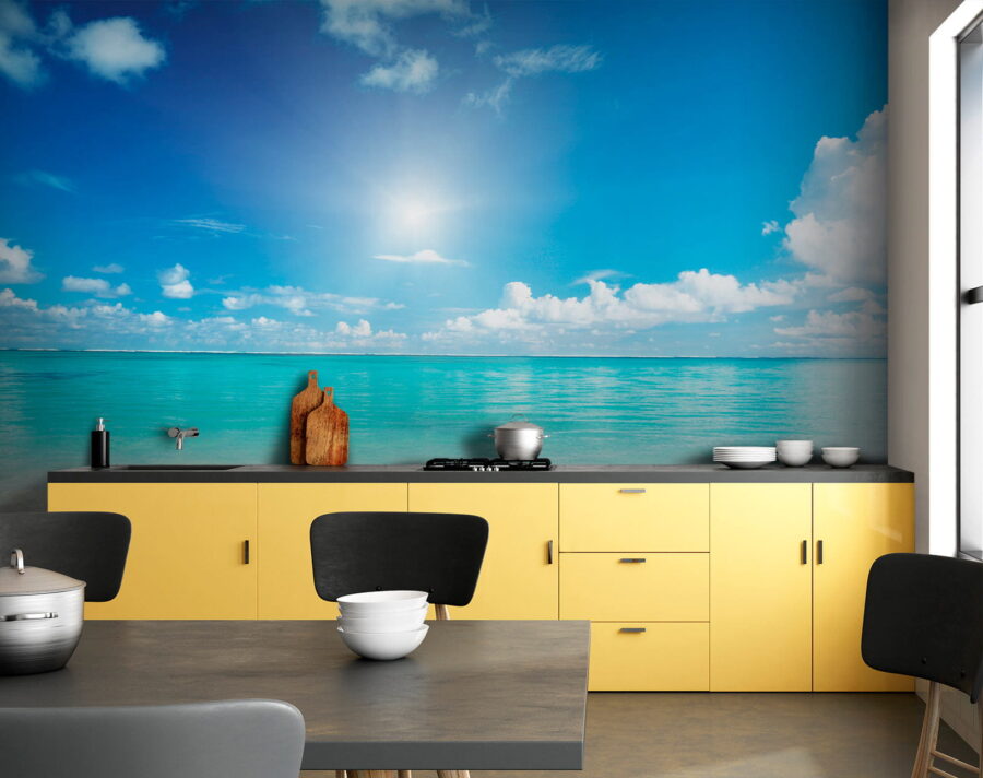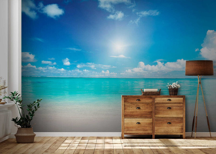 Μεταμορφώστε οποιοδήποτε δωμάτιο σε μια γαλήνια απόδραση με αυτή την εκπληκτική τοιχογραφία ενός μπλε ουρανού, χνουδωτών σύννεφων και ενός λαμπερού ήλιου που ρίχνει τη ζεστή του λάμψη. Φανταστείτε να μπαίνετε στο χώρο σας και να αισθάνεστε σαν να έχετε μόλις μπει σε μια γαλήνια παραλία – ακόμα κι αν πρόκειται μόνο για το σαλόνι σας. Αυτή η τοιχογραφία αποτυπώνει την ουσία της παράκτιας ατμόσφαιρας, προσκαλώντας την ηρεμία και τη χαλάρωση. Ιδανική για να ονειροπολήσετε ή να σχεδιάσετε την επόμενη απόδραση στον ωκεανό, φέρνει αβίαστα ένα κομμάτι της φύσης στους εσωτερικούς χώρους. Ποιος δεν θα ήθελε να ξυπνήσει με μια θέα που έχει να κάνει με τη λιακάδα και τα απαλά, ήπια κύματα; Είναι σαν διακοπές για τους τοίχους σας!