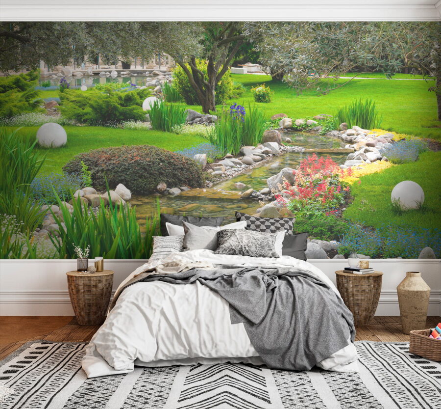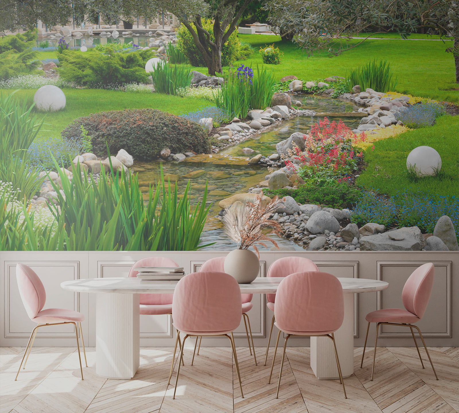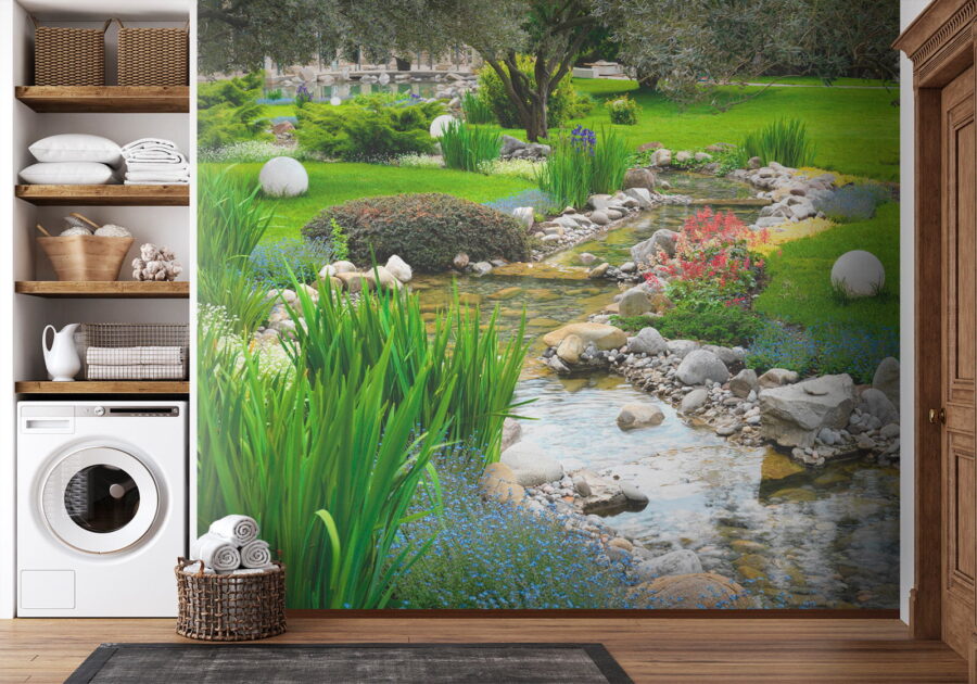 Μεταμορφώστε οποιονδήποτε τοίχο σε ένα αναζωογονητικό καταφύγιο με την «Τοιχογραφία με ρυάκι που τρέχει μέσα σε πάρκο». Φανταστείτε να ξυπνάτε κάθε πρωί με ένα γαλήνιο ρυάκι να τρέχει απαλά μέσα σε πλούσια βλάστηση – ευτυχία, σωστά; Αυτή η τοιχογραφία φέρνει ένα κομμάτι της φύσης στο εσωτερικό του σπιτιού σας, ιδανική για εκείνη την άνετη γωνιά ανάγνωσης ή ίσως ακόμα και για το γραφείο στο σπίτι που χρειάζεται λίγη τόνωση. Φανταστείτε τον εαυτό σας να πίνετε καφέ ενώ κοιτάζετε τα ζωντανά αγριολούλουδα και το γαλήνιο ρυάκι. Είναι σαν μίνι διακοπές, χωρίς τις βαριές βαλίτσες! Τα χρώματα αναδύονται όμορφα, κάνοντας κάθε χώρο να φαίνεται ζωντανός και φιλόξενος. Και ας είμαστε ειλικρινείς, ποιος δεν θα ήθελε να φέρει λίγο από αυτή την ηρεμία της φύσης στο σαλόνι του;