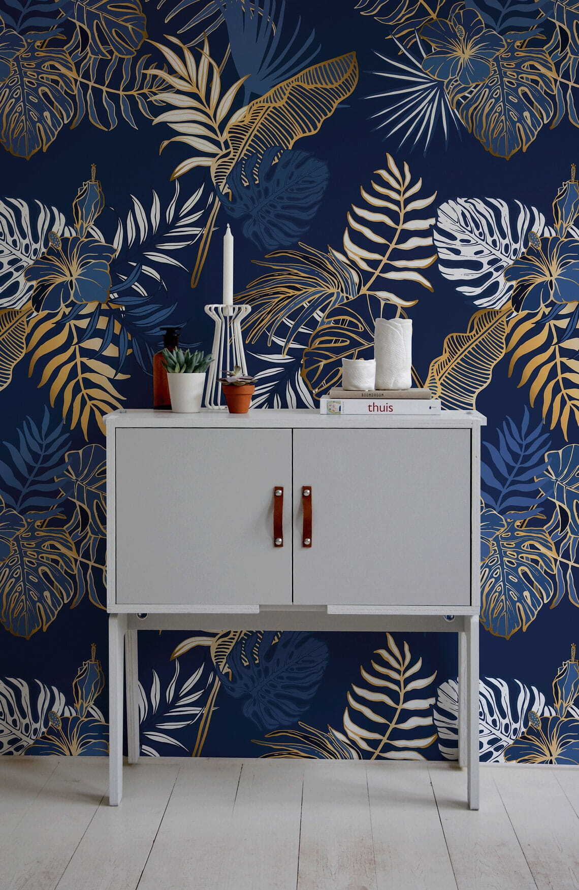 Μεταμορφώστε οποιονδήποτε χώρο σε τροπικό παράδεισο με αυτή την εκπληκτική τοιχογραφία τοίχου με μοτίβο φύλλων σε πλούσιο μπλε φόντο. Είναι σαν να φέρνετε ένα κομμάτι της φύσης στο σπίτι σας. Φανταστείτε να πίνετε τον καφέ σας ενώ περιβάλλεστε από πλούσιο πράσινο και ζωντανά σχέδια – μιλάμε για μια άμεση βελτίωση της διάθεσης! Με το παιχνιδιάρικο πράσινο, η τοιχογραφία προσκαλεί ζεστασιά και μια αίσθηση ηρεμίας, ιδανική για χαλαρωτικές διαθέσεις. Απλά φανταστείτε να φιλοξενείτε φίλους- θα κάνουν oooh-ing και aaah-ing σε αυτό το μοναδικό ντεκόρ. Μια προσεγμένη πινελιά για υπνοδωμάτια, σαλόνια ή ακόμη και για μια ζεστή γωνιά ανάγνωσης – αυτή η τοιχογραφία είναι έτοιμη να ξυπνήσει τον εσωτερικό σας εραστή της φύσης. Προχωρήστε, αφήστε αυτούς τους τοίχους να αναπνεύσουν λίγο φρέσκο αέρα!