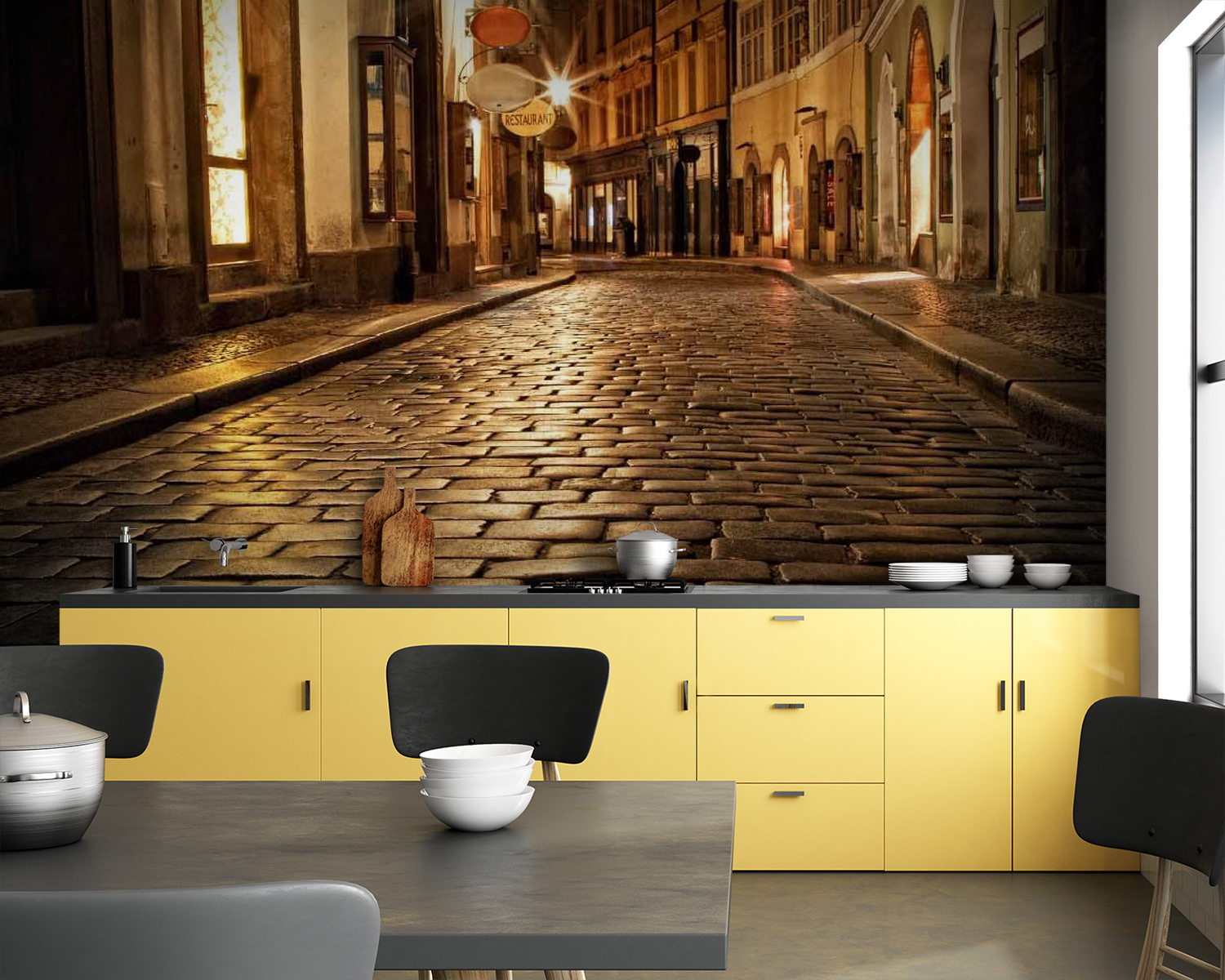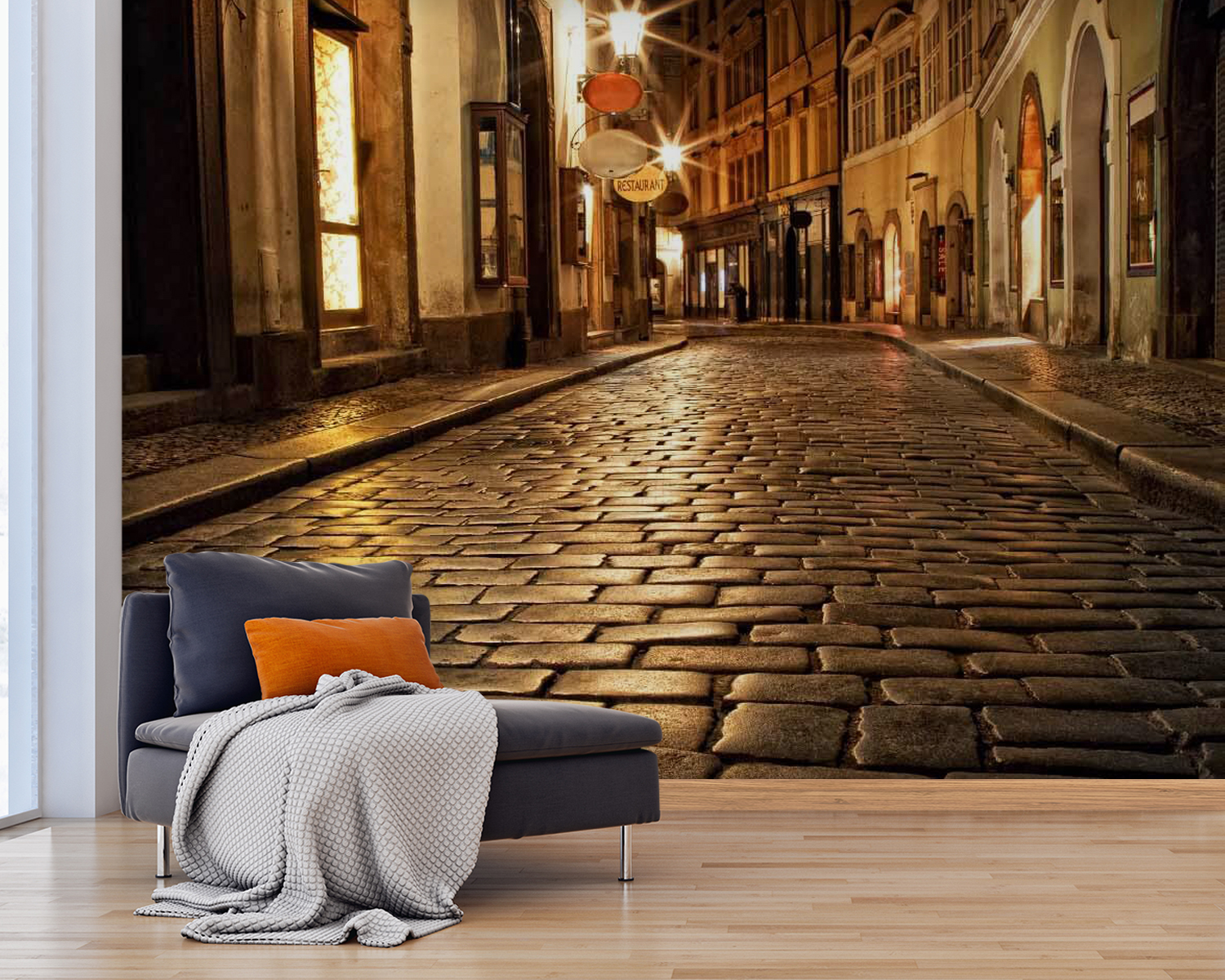 Transform any room into a cozy corner of a charming city with this mural, “Stone Street with Buildings and Street Lights.” Imagine stepping into a scene where cobblestones glisten under soft streetlamp glow. It’s like inviting a piece of a whimsical night stroll right into your home. The warm hues evoke a sense of nostalgia, making it perfect for a dining nook or a relaxing reading area. Picture curling up with a book while sipping your favorite tea, with the comforting feel of an evening stroll surrounding you. Perfect for those who crave a bit of urban magic!