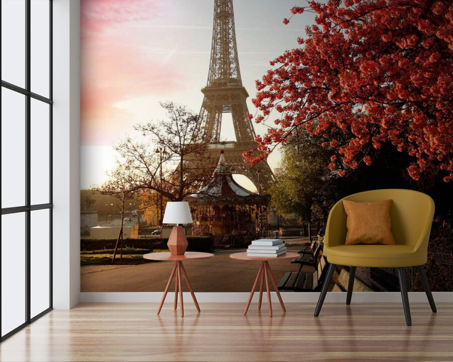 Μεταμορφώστε οποιονδήποτε τοίχο σε ένα γαλήνιο καταφύγιο με αυτό το «Τοιχογραφία με πάρκο, παγκάκια και πύργο». Φανταστείτε το εξής: μπαίνετε στο δωμάτιό σας και μπροστά στα μάτια σας απλώνεται μια φιλόξενη εικόνα πάρκου — ένας απογευματινός περίπατος κάτω από ανθισμένα δέντρα, με τον Πύργο του Άιφελ να ξεπροβάλλει ανάμεσα στα κλαδιά σαν ένας παλιός φίλος. Τα απαλά χρώματα δημιουργούν μια γαλήνια ατμόσφαιρα, ιδανική για να χαλαρώσετε μετά από μια κουραστική μέρα ή να εμπνευστείτε δημιουργικά ένα χαλαρό πρωινό.