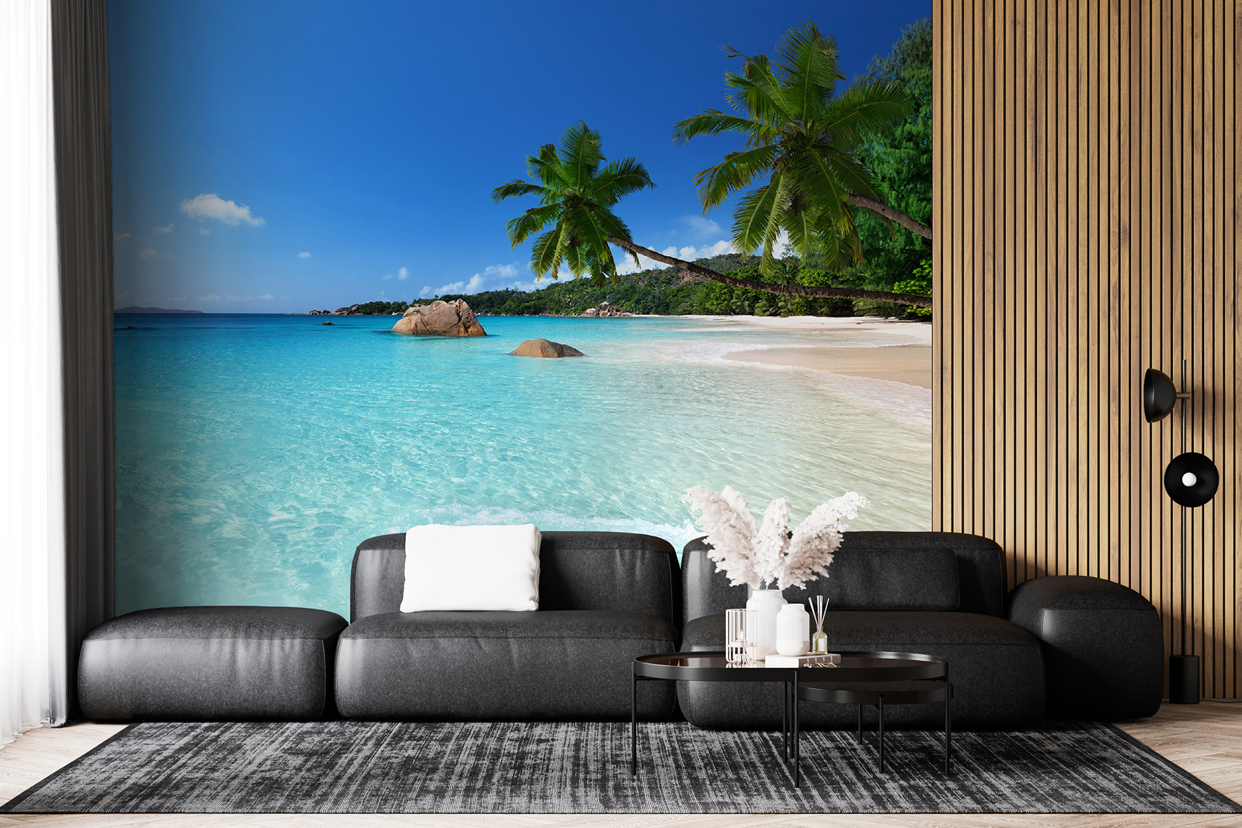 Μεταμορφώστε αυτόν τον κενό τοίχο σε μια τροπική απόδραση με αυτή την εκπληκτική τοιχογραφία με φοίνικες κάτω από έναν καταγάλανο ουρανό διάστικτο με χνουδωτά σύννεφα. Είναι σαν να προσκαλείτε ένα κομμάτι του παραδείσου στο σπίτι σας. Φανταστείτε να ξυπνάτε, να πίνετε τον καφέ σας και να αισθάνεστε σαν να βρίσκεστε σε μια αμμώδη παραλία αντί για το σαλόνι σας. Αυτή η τοιχογραφία δημιουργεί αβίαστα μια χαλαρωτική ατμόσφαιρα, ιδανική για μια ζεστή γωνιά ανάγνωσης ή μια ζωντανή τραπεζαρία. Οι φίλοι μπορεί να ξεχάσουν ότι βρίσκονται σε εσωτερικό χώρο – μέχρι να φτάσουν για σνακ! Αγκαλιάστε την παραθαλάσσια γοητεία και αφήστε την καλή διάθεση να έρθει.