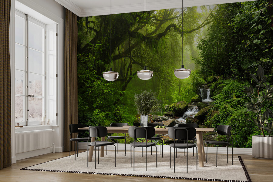 Μεταμορφώστε το χώρο σας σε μια ονειρική απόδραση με την τοιχογραφία “Misty Forest with Flowing Stream”. Φανταστείτε να μπαίνετε σε μια ήρεμη ζούγκλα, όπου ο αέρας είναι φρέσκος και οι ήχοι του νερού που αναβλύζει απαλά δημιουργούν μια χαλαρωτική ατμόσφαιρα. Αυτή η γραφική σκηνή, με το πλούσιο πράσινο και την απαλή πρωινή ομίχλη, προσκαλεί μια ηρεμιστική ενέργεια που είναι ιδανική για κάθε δωμάτιο. Είναι σαν να έχετε ένα κομμάτι της φύσης στον τοίχο σας, χωρίς τα κουνούπια και τις μπότες λάσπης. Φανταστείτε άνετα βράδια που περνάτε εδώ, νιώθοντας ότι βρίσκεστε στην καρδιά του δάσους, πίνοντας τσάι και χαλαρώνοντας από τη μέρα. Μια απολαυστική πινελιά για όσους επιθυμούν λίγη άγρια φύση στη διακόσμησή τους!