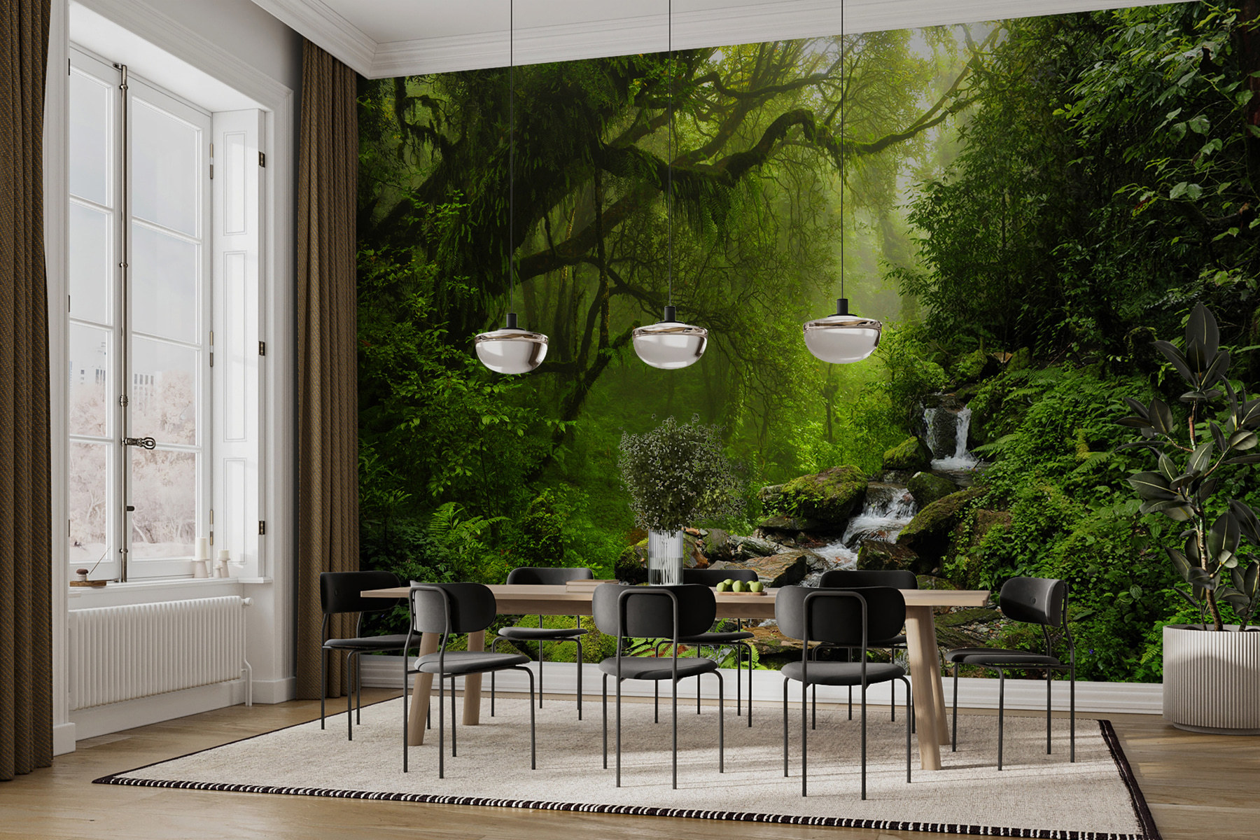 Μεταμορφώστε το χώρο σας σε μια ονειρική απόδραση με την τοιχογραφία “Misty Forest with Flowing Stream”. Φανταστείτε να μπαίνετε σε μια ήρεμη ζούγκλα, όπου ο αέρας είναι φρέσκος και οι ήχοι του νερού που αναβλύζει απαλά δημιουργούν μια χαλαρωτική ατμόσφαιρα. Αυτή η γραφική σκηνή, με το πλούσιο πράσινο και την απαλή πρωινή ομίχλη, προσκαλεί μια ηρεμιστική ενέργεια που είναι ιδανική για κάθε δωμάτιο. Είναι σαν να έχετε ένα κομμάτι της φύσης στον τοίχο σας, χωρίς τα κουνούπια και τις μπότες λάσπης. Φανταστείτε άνετα βράδια που περνάτε εδώ, νιώθοντας ότι βρίσκεστε στην καρδιά του δάσους, πίνοντας τσάι και χαλαρώνοντας από τη μέρα. Μια απολαυστική πινελιά για όσους επιθυμούν λίγη άγρια φύση στη διακόσμησή τους!