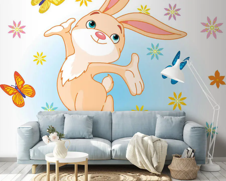 Transform any space into a little wonderland with this delightful wall mural of a cheerful rabbit leaping through a flurry of butterflies! Imagine walking into a room and instantly catching this playful scene—it’s like the bunny’s shouting, “Let’s celebrate life!” The vivid colors create a joyful vibe, making it perfect for a child’s room or even a whimsical touch in a playroom. It’s hard not to smile at that cute face; don’t be surprised if it sparks spontaneous dance parties or bursts of laughter. This mural invites a sprinkle of magic and a dash of adventure into everyday life—who wouldn’t want that? So, whether it’s a backdrop for storytime or just a cheerful sight to brighten up the day, this mural hits the sweet spot between fun and fabulous!