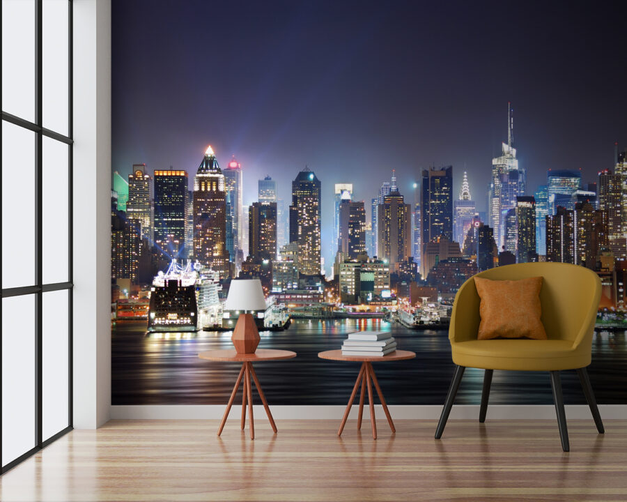 Μεταμορφώστε το χώρο σας με αυτή την εκπληκτική τοιχογραφία του ορίζοντα της πόλης, ιδανική για τις στιγμές που θα περάσετε μέχρι αργά το βράδυ. Φανταστείτε την πολύβουη ενέργεια και τη μαγεία μιας πόλης που φωτίζεται τη νύχτα – είναι σαν να έχετε το δικό σας κομμάτι αστικής περιπέτειας στον τοίχο σας. Οι πλούσιες αποχρώσεις σας προσελκύουν, κάνοντας τα ζεστά βράδια να μοιάζουν ιδιαίτερα ξεχωριστά. Φανταστείτε να μαζεύετε φίλους, να πίνετε ποτά και να απολαμβάνετε την ατμόσφαιρα που δημιουργεί αυτή η τοιχογραφία. Είναι σαν η πόλη να ψιθυρίζει ιστορίες για όνειρα και αποδράσεις αργά το βράδυ. Είτε σε ένα σαλόνι είτε σε ένα δωμάτιο παιχνιδιών, αυτό το κομμάτι φέρνει ζωή, γοητεία και ίσως ακόμη και λίγη περιπλάνηση στην καθημερινότητά σας!