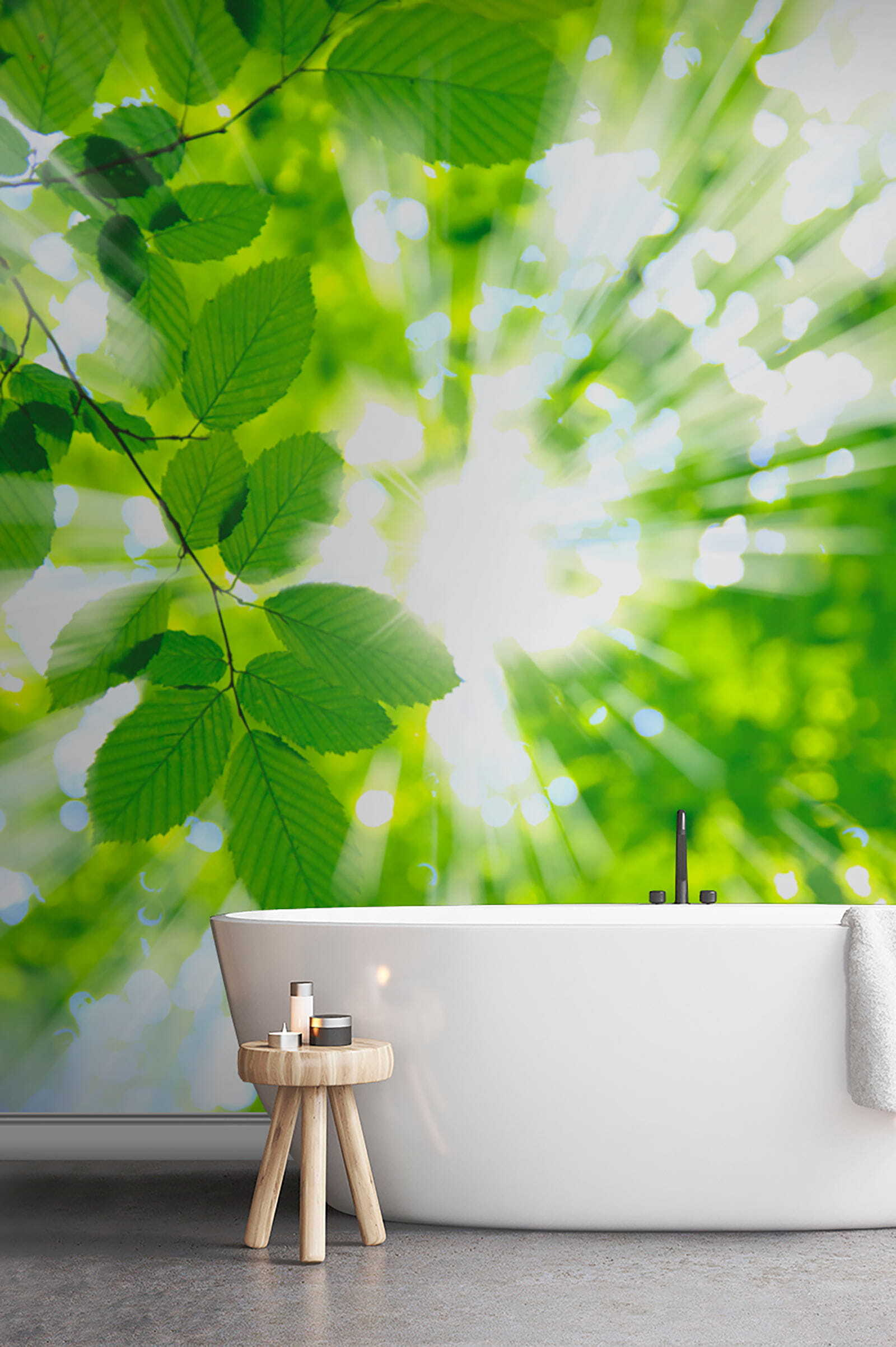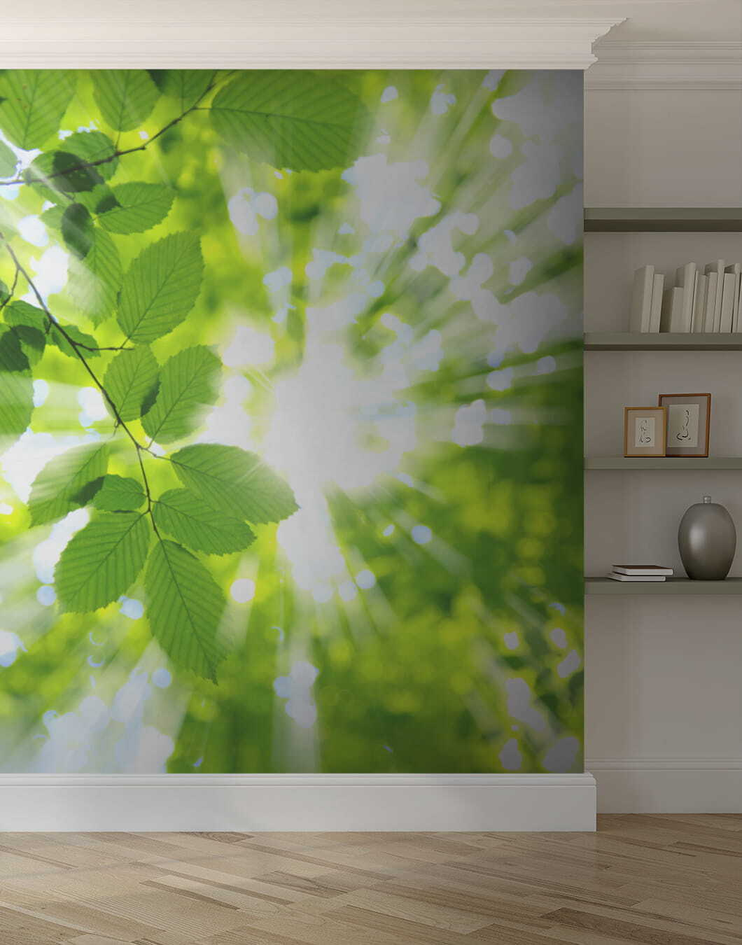 Φανταστείτε να ξυπνάτε σε ένα δάσος λουσμένο στις ακτίνες του ήλιου – αυτό είναι το είδος της ατμόσφαιρας που φέρνει στον χώρο σας αυτή η τοιχογραφία “Sunlight streaming through green leaves”. Είναι σαν η φύση να πάτησε παύση στην πιο τέλεια στιγμή και να είπε: “Ορίστε, πάρε αυτό”. Ιδανική για όποιον χρειάζεται λίγο περισσότερο πράσινο στη ζωή του (που, ας το παραδεχτούμε, είναι όλοι).