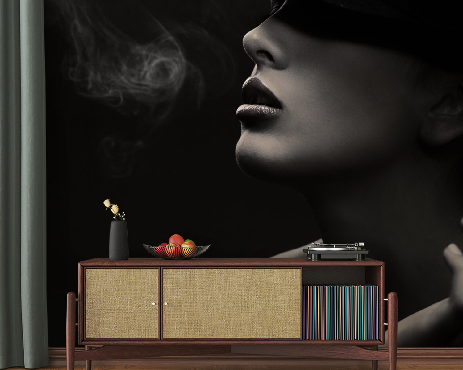 Μεταμορφώστε το χώρο σας σε ένα καλλιτεχνικό καταφύγιο με αυτή τη γοητευτική τοιχογραφία μιας γυναίκας με καπέλο που καπνίζει άνετα. Είναι σαν να μπαίνετε σε ένα κομψό καφέ, όπου κάθε γωνιά ψιθυρίζει κομψότητα και ίντριγκα. Ο τρόπος με τον οποίο κοιτάζει στο βάθος, περιτριγυρισμένη από μια δίνη καπνού, προσθέτει μια πινελιά μυστηρίου – τέλεια για να προκαλέσετε ενδιαφέρουσες συζητήσεις.