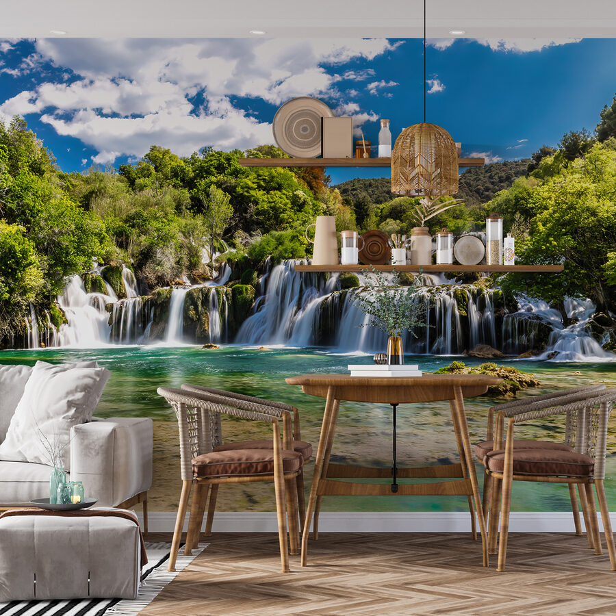 Μεταμορφώστε οποιοδήποτε δωμάτιο σε μια γαλήνια απόδραση με αυτή την εκπληκτική τοιχογραφία ενός γαλάζιου ουρανού διάστικτου με χνουδωτά σύννεφα και ζωντανά δέντρα. Φανταστείτε να ξυπνάτε κάθε μέρα με την απαλή υπενθύμιση της ομορφιάς της φύσης – είναι σαν να φέρνετε την ύπαιθρο μέσα, χωρίς τα έντομα. Ιδανικό για ένα άνετο σαλόνι ή μια γαλήνια γωνιά, προσκαλεί σε ονειροπολήσεις και ηλιόλουστες δονήσεις. Επιπλέον, είναι ένα εξαιρετικό στοιχείο για να ξεκινήσετε μια συζήτηση. Φανταστείτε τους φίλους σας να αράζουν, να θαυμάζουν την “υπαίθρια όαση” σας, ενώ κρυφά αναρωτιούνται πώς καταφέρατε μια τόσο δροσερή εμφάνιση. Είναι μια πινελιά της φύσης που δεν φεύγει ποτέ από τη μόδα.