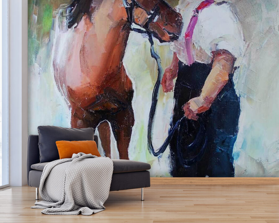 Σας παρουσιάζουμε μια τοιχογραφία που αποτυπώνει την καθαρή μαγεία: ένα κορίτσι που ανταλλάσσει ένα τρυφερό φιλί με το άλογό της. Αυτό το έργο τέχνης δεν είναι απλώς μια ζωγραφιά στον τοίχο, αλλά ένα παράθυρο σε έναν κόσμο όπου η αθωότητα και η φιλία ανθίζουν μέσα από απαλές πινελιές. Φανταστείτε να μπαίνετε σε αυτόν τον χώρο και να νιώθετε αμέσως αναζωογονημένοι, σαν μια ζεστή αγκαλιά σε μια κρύα μέρα. Τα γήινα χρώματα συνδυάζονται αρμονικά, δημιουργώντας μια αίσθηση γαλήνης και νοσταλγίας. Είναι ιδανικό για να φωτίσει ένα δωμάτιο παιχνιδιών, να προσθέσει γοητεία σε μια ζεστή γωνιά ή να φέρει χαρά σε οποιοδήποτε δωμάτιο. Μια ευχάριστη υπενθύμιση ότι η αγάπη δεν γνωρίζει όρια, ούτε καν είδη! Είτε είστε λάτρης των αλόγων είτε απλά κάποιος που εκτιμά τη μοναδική διακόσμηση, αυτή η τοιχογραφία τραγουδά μια γλυκιά μελωδία που αντηχεί στην καρδιά. Ποιος δεν θα ήθελε να απολαμβάνει αυτή τη ζεστασιά κάθε μέρα;