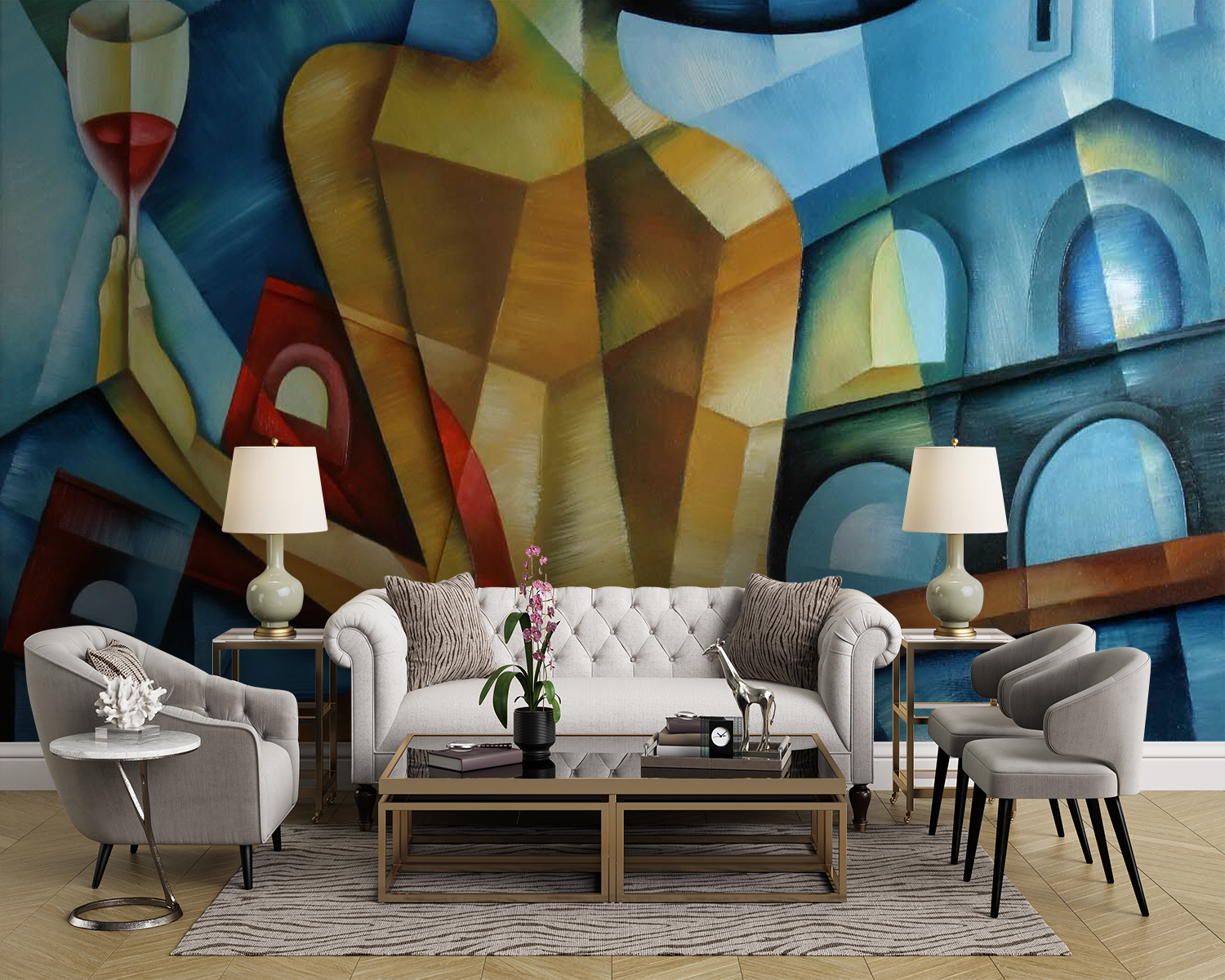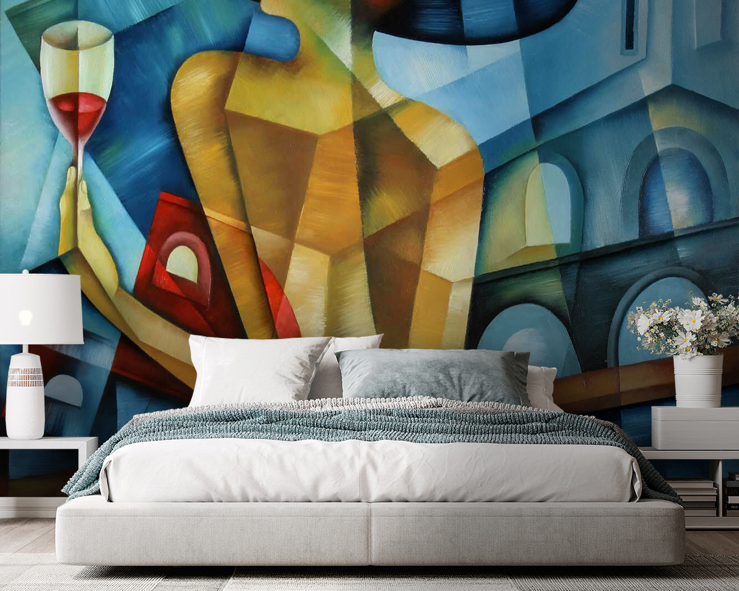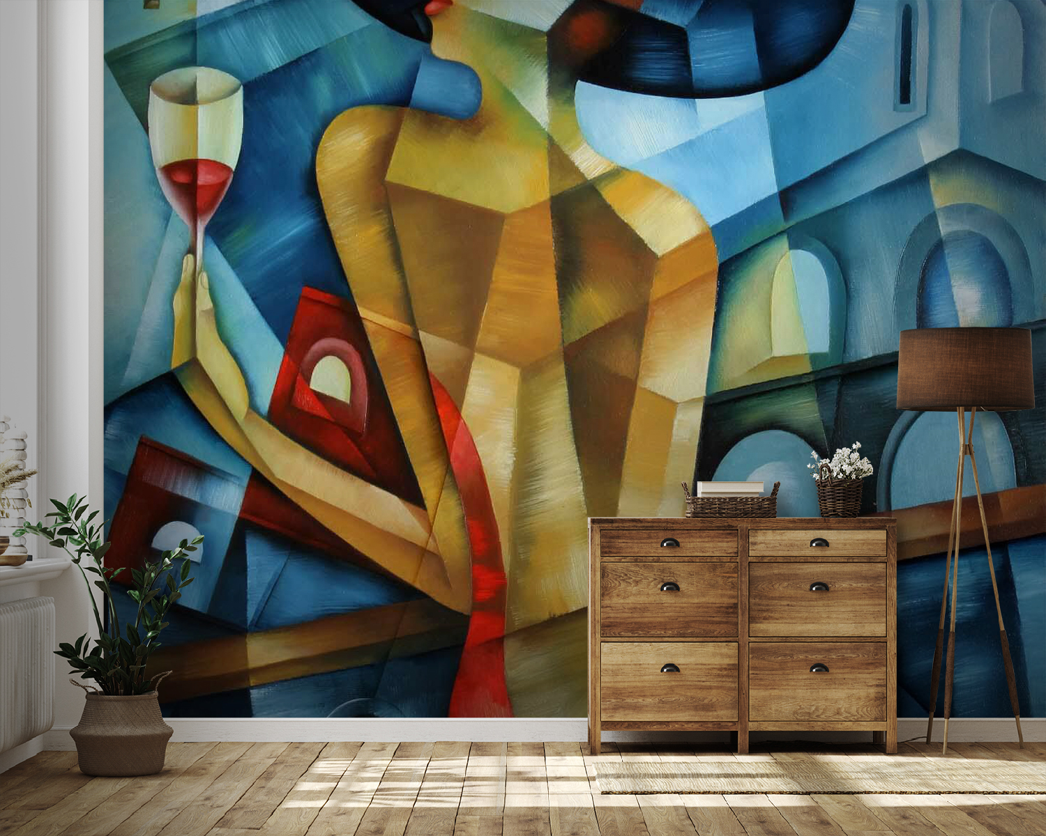 Φανταστείτε αυτή την τοιχογραφία να σας υποδέχεται κάθε πρωί – μια κυρία που κρατάει ένα ποτήρι κρασί, χαμένη στις σκέψεις της. Φανταστείτε την τολμηρή παρουσία της στον τοίχο σας, με αυτές τις ακουαρέλες να αναμειγνύονται και να στροβιλίζονται, δημιουργώντας μια ατμόσφαιρα χαλαρή και ταυτόχρονα ελαφρώς εκλεπτυσμένη. Είναι σαν να έχετε μια ήσυχη, κομψή σύντροφο στο χώρο σας. Τα χρώματα είναι ονειρικά, κυρίως μπλε και κόκκινα, καθιστώντας το αρκετά ευέλικτο για σχεδόν κάθε δωμάτιο. Αυτό θα μπορούσε να είναι η τέλεια πινελιά για το σαλόνι σας, εισάγοντας λίγο καλλιτεχνικό αέρα χωρίς να είναι πολύ “in-your-face”. Ίσως σας εμπνεύσει να χαλαρώσετε με το δικό σας ποτήρι κρασί στο τέλος μιας κουραστικής ημέρας. Δεν είναι απλώς διακόσμηση, είναι μια δήλωση – αποτυπώνει αβίαστα αυτή τη γαλήνια στιγμή απόλαυσης και περισυλλογής. Ποιος ξέρει; Αυτή η τοιχογραφία μπορεί να γίνει το σκηνικό για πολλές άνετες νύχτες και ειλικρινείς συζητήσεις.