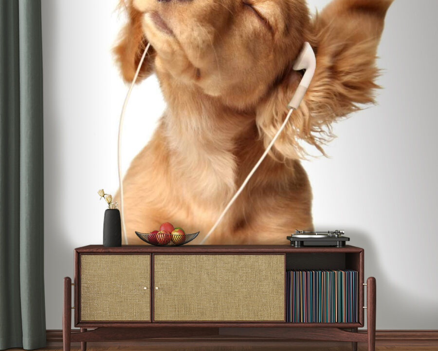 Imagine walking into a room and getting smacked in the face with a wave of joy, all thanks to this delightful wall mural featuring a pup blissfully lost in a world of tunes. This adorable dog, with those floppy ears and an expression that screams “I’ve found my jam,” adds a unique touch to any space—be it a cozy den or a lively office.