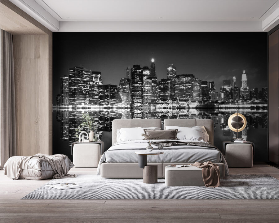 Μεταμορφώστε οποιοδήποτε δωμάτιο σε ένα κομψό καταφύγιο με αυτή την εκπληκτική τοιχογραφία του ορίζοντα μιας πόλης τη νύχτα. Φανταστείτε το εξής: ζωντανά φώτα που λάμπουν σαν αστέρια στην επιφάνεια του νερού, δημιουργώντας μια μαγευτική λάμψη. Είναι σαν να προσκαλείτε την αστική νυχτερινή ζωή κατευθείαν στο χώρο σας. Φανταστείτε να χαλαρώνετε στο σπίτι, περιτριγυρισμένοι από το δράμα και την ομορφιά μιας πολυσύχναστης πόλης χωρίς τον θόρυβο. Μπορείτε ακόμη και να φανταστείτε μια ζεστή γωνιά με το αγαπημένο σας ποτό, νιώθοντας έμπνευση από την ενέργεια του ορίζοντα. Μια πινελιά κομψότητας, μια δόση μαγείας – αυτή η ταπετσαρία τα έχει όλα! Ιδανική για όσους αγαπούν την αριστοκρατική ατμόσφαιρα, χωρίς όμως να παίρνουν τον εαυτό τους πολύ στα σοβαρά.