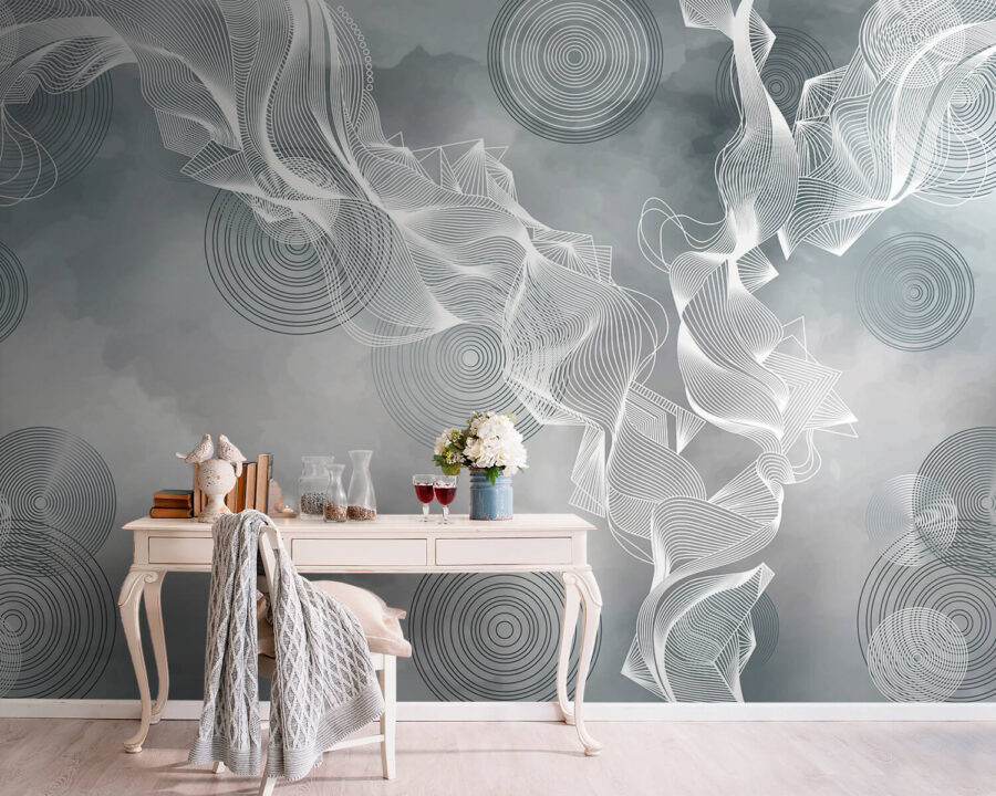 Μεταμορφώστε το χώρο σας με τη γοητευτική τοιχογραφία με τις λευκές και μαύρες δίνες σε διακριτικό γκρι φόντο. Αυτό το σχέδιο χορεύει στον τοίχο, προσκαλώντας μια αίσθηση κίνησης και ροής που μπορεί να κάνει οποιοδήποτε δωμάτιο να αισθάνεται ζωντανό. Είναι σαν να έχετε ένα μικρό κομμάτι μοντέρνας τέχνης ακριβώς στο σαλόνι σας! Φανταστείτε να πίνετε τον καφέ σας κοιτάζοντας αυτές τις ενδιαφέρουσες δίνες – σοβαρά, θα προκαλέσει μερικές υπέροχες συζητήσεις. Επιπλέον, συνδυάζεται αβίαστα με διάφορα στυλ, οπότε είτε είστε φανταχτερός είτε χαλαρός, αυτή η τοιχογραφία παραμένει κομψή. Ο τοίχος σας θα σας ευχαριστεί!