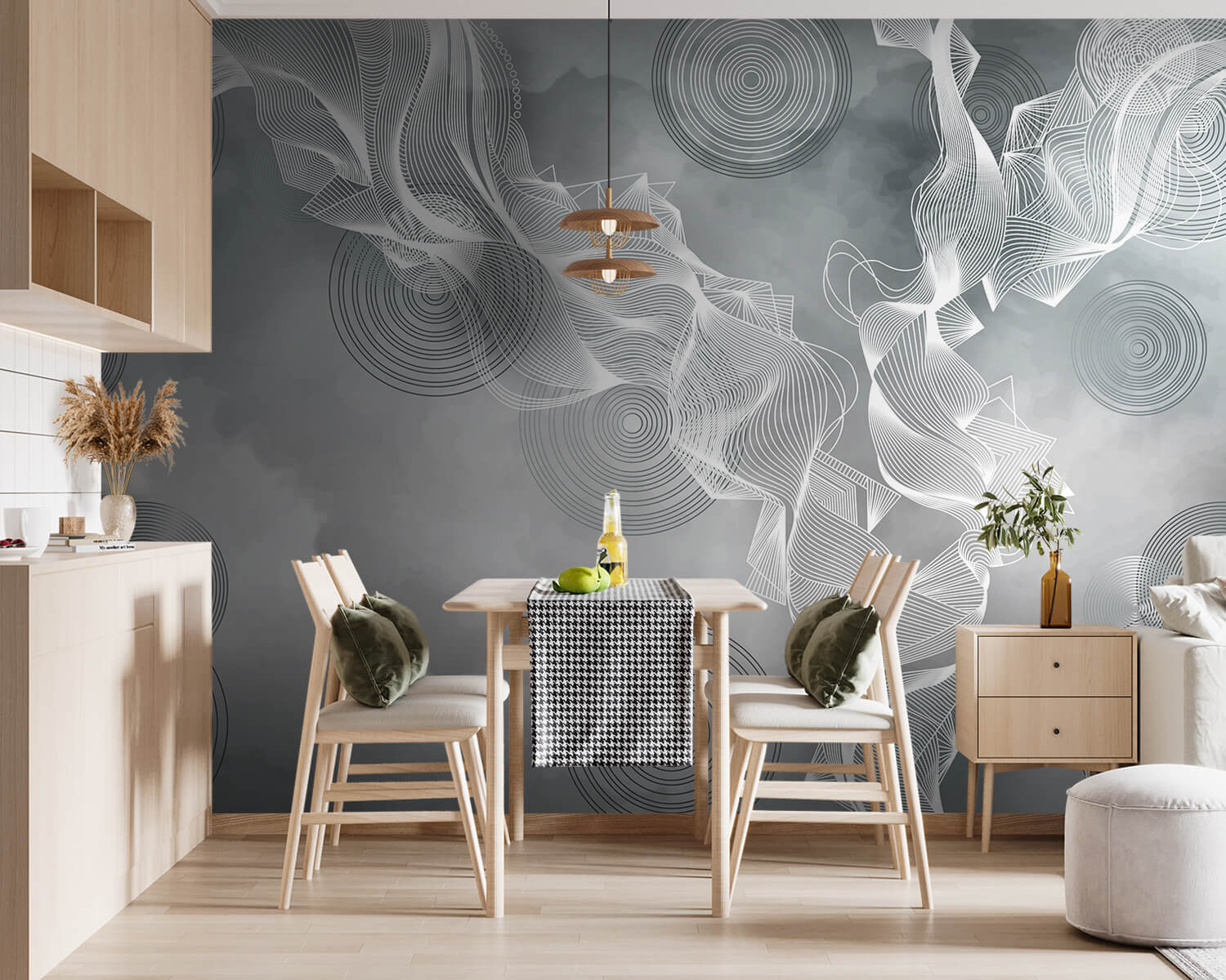 Μεταμορφώστε το χώρο σας με τη γοητευτική τοιχογραφία με τις λευκές και μαύρες δίνες σε διακριτικό γκρι φόντο. Αυτό το σχέδιο χορεύει στον τοίχο, προσκαλώντας μια αίσθηση κίνησης και ροής που μπορεί να κάνει οποιοδήποτε δωμάτιο να αισθάνεται ζωντανό. Είναι σαν να έχετε ένα μικρό κομμάτι μοντέρνας τέχνης ακριβώς στο σαλόνι σας! Φανταστείτε να πίνετε τον καφέ σας κοιτάζοντας αυτές τις ενδιαφέρουσες δίνες – σοβαρά, θα προκαλέσει μερικές υπέροχες συζητήσεις. Επιπλέον, συνδυάζεται αβίαστα με διάφορα στυλ, οπότε είτε είστε φανταχτερός είτε χαλαρός, αυτή η τοιχογραφία παραμένει κομψή. Ο τοίχος σας θα σας ευχαριστεί!