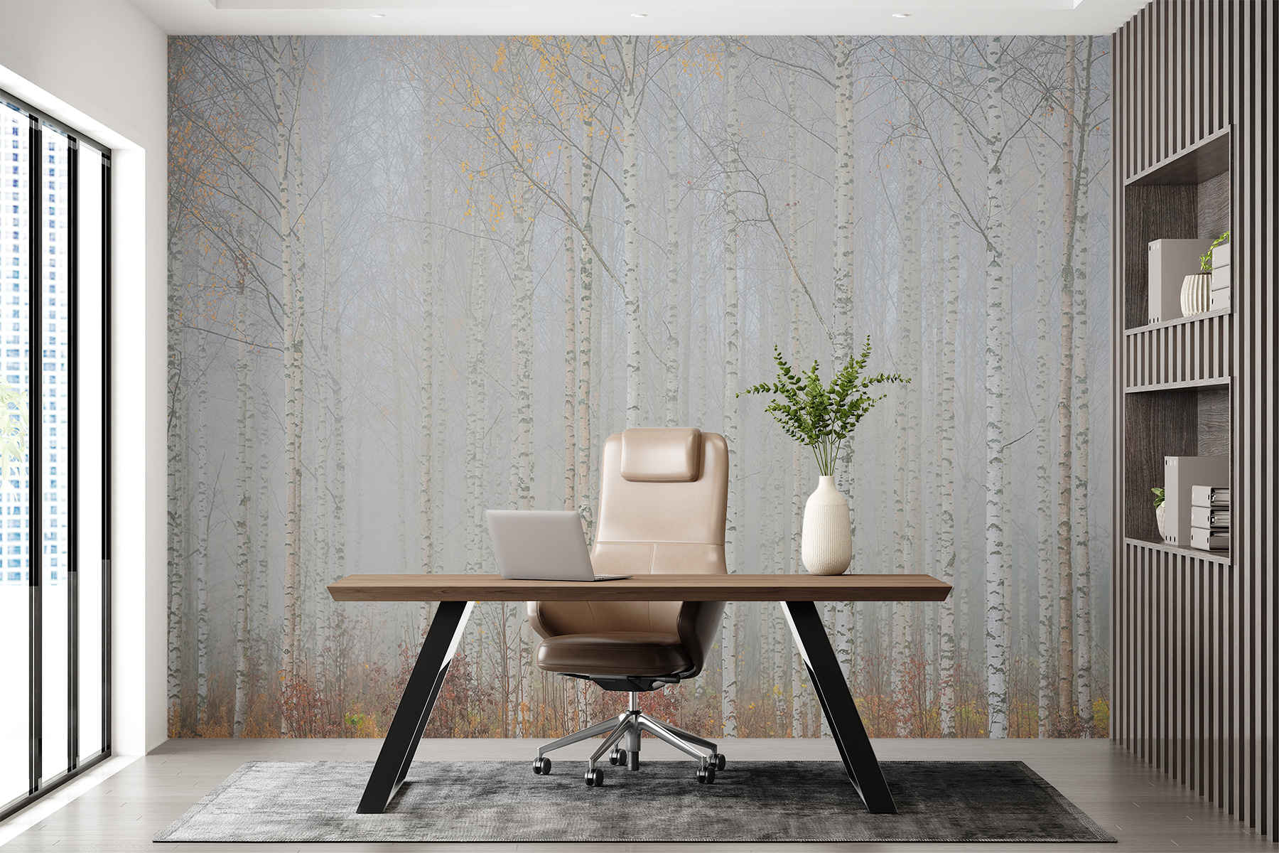 Φανταστείτε να μπαίνετε σε μια ομιχλώδη χώρα θαυμάτων κάθε φορά που μπαίνετε στο δωμάτιό σας. Αυτό ακριβώς σας προσφέρει αυτή η τοιχογραφία “Ομάδα δέντρων σε ένα ομιχλώδες δάσος”. Οι λεπτεπίλεπτες σημύδες που στέκονται σιωπηλές μέσα στην ομίχλη δημιουργούν μια ηρεμιστική, ονειρική ατμόσφαιρα. Ιδανική για εκείνες τις άνετες μέρες που μένετε στο σπίτι με ένα βιβλίο και ένα φλιτζάνι τσάι. Είναι σαν ένα μικρό κομμάτι της φύσης στον τοίχο σας – χωρίς τις λασπωμένες μπότες. Αυτή η τοιχογραφία προσθέτει μια πινελιά γαλήνιας γοητείας του δάσους στο χώρο σας, κάνοντάς τον να μοιάζει τόσο ήρεμος όσο και διαχρονικός. Ιδανική για τους λάτρεις της φύσης ή για όποιον θέλει να δώσει στο σπίτι του λίγη από τη μαγεία του δάσους. Είτε πρόκειται για το σαλόνι, το υπνοδωμάτιο ή ίσως ακόμη και για το γραφείο του σπιτιού – κάνει τα πάντα να μοιάζουν λίγο πιο μαγεμένα.