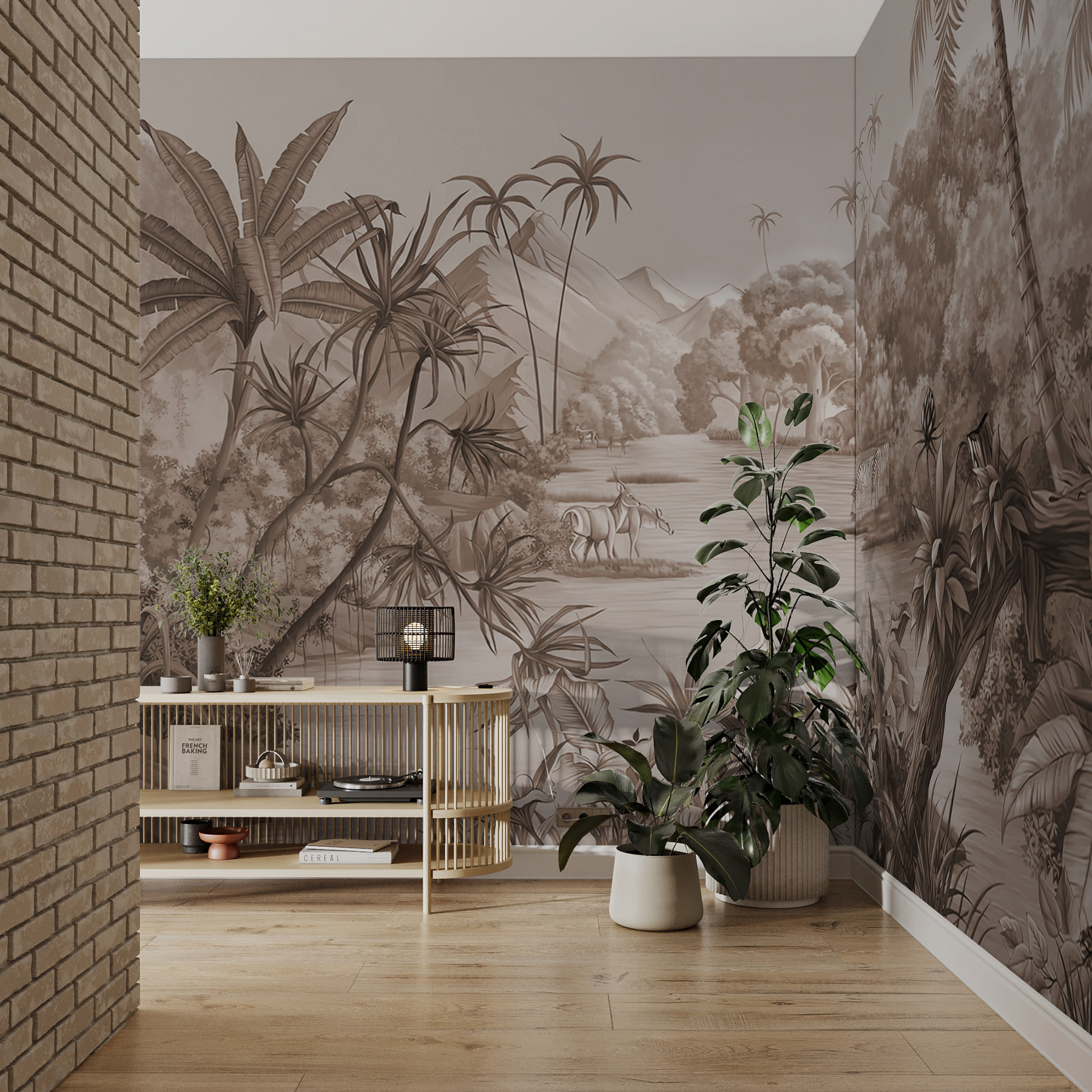 Μεταμορφώστε οποιοδήποτε δωμάτιο σε μια τροπική απόδραση με αυτή την εκπληκτική τοιχογραφία τοίχου με μια ζωντανή σκηνή ζούγκλας. Φανταστείτε τον εαυτό σας να χαλαρώνει με τους ήχους της φύσης να σας περιβάλλουν, καθώς χαριτωμένα ζώα ελίσσονται μέσα από πλούσια φυλλώματα. Οι γήινοι τόνοι και οι περίπλοκες λεπτομέρειες αυτής της τοιχογραφίας δημιουργούν μια γαλήνια ατμόσφαιρα, κάνοντας κάθε ματιά να μοιάζει με μίνι διακοπές. Ιδανική για μια ζεστή γωνιά ή ένα ζωντανό οικογενειακό δωμάτιο, προσκαλεί ζεστασιά και περιπέτεια. Φανταστείτε να πίνετε καφέ ενώ ονειρεύεστε άγριες ζούγκλες – ποιος δεν θα το ήθελε αυτό; Φέρτε ένα μικρό κομμάτι της φύσης στους εσωτερικούς χώρους και δείτε τους τοίχους σας να ζωντανεύουν!